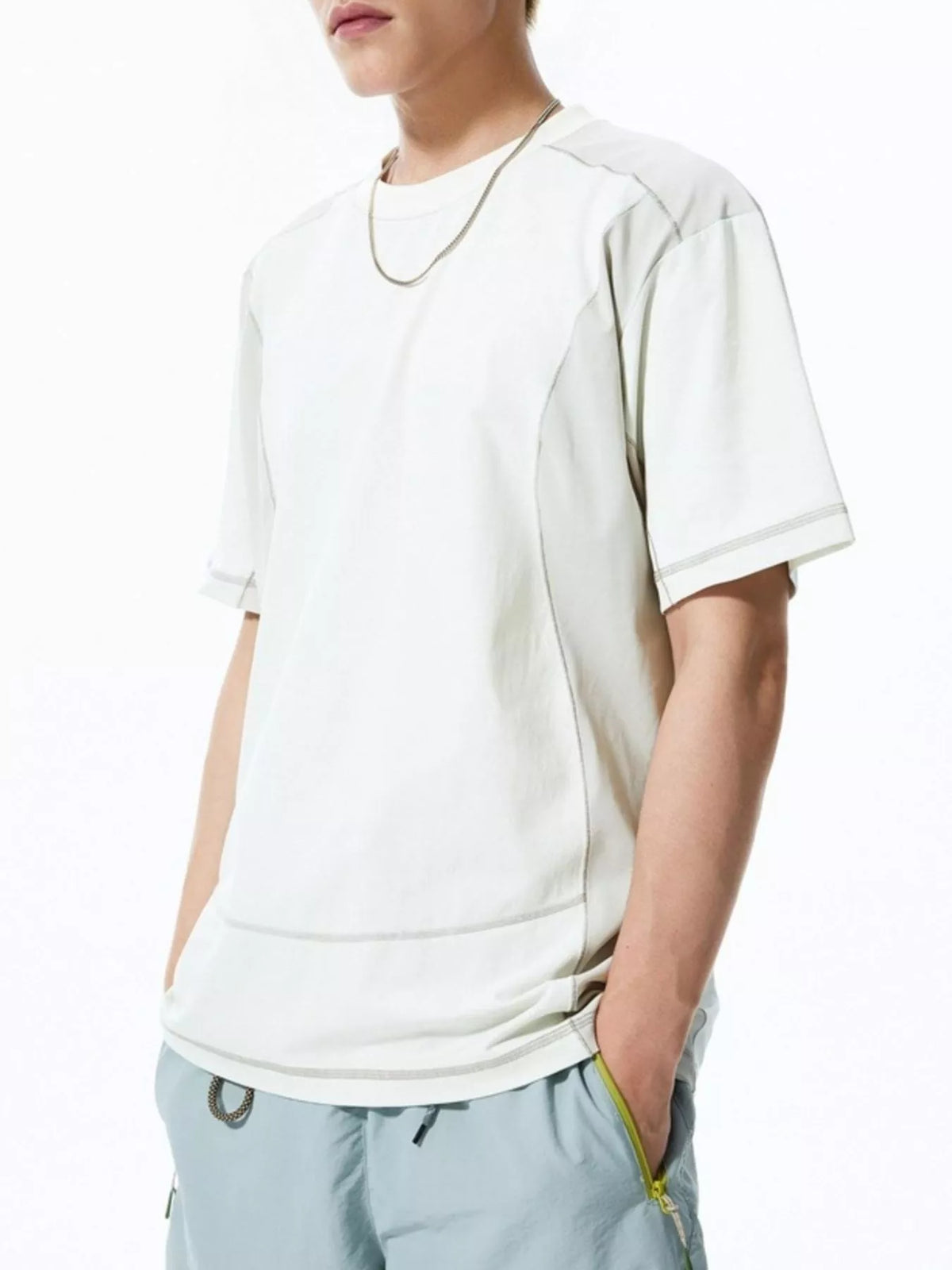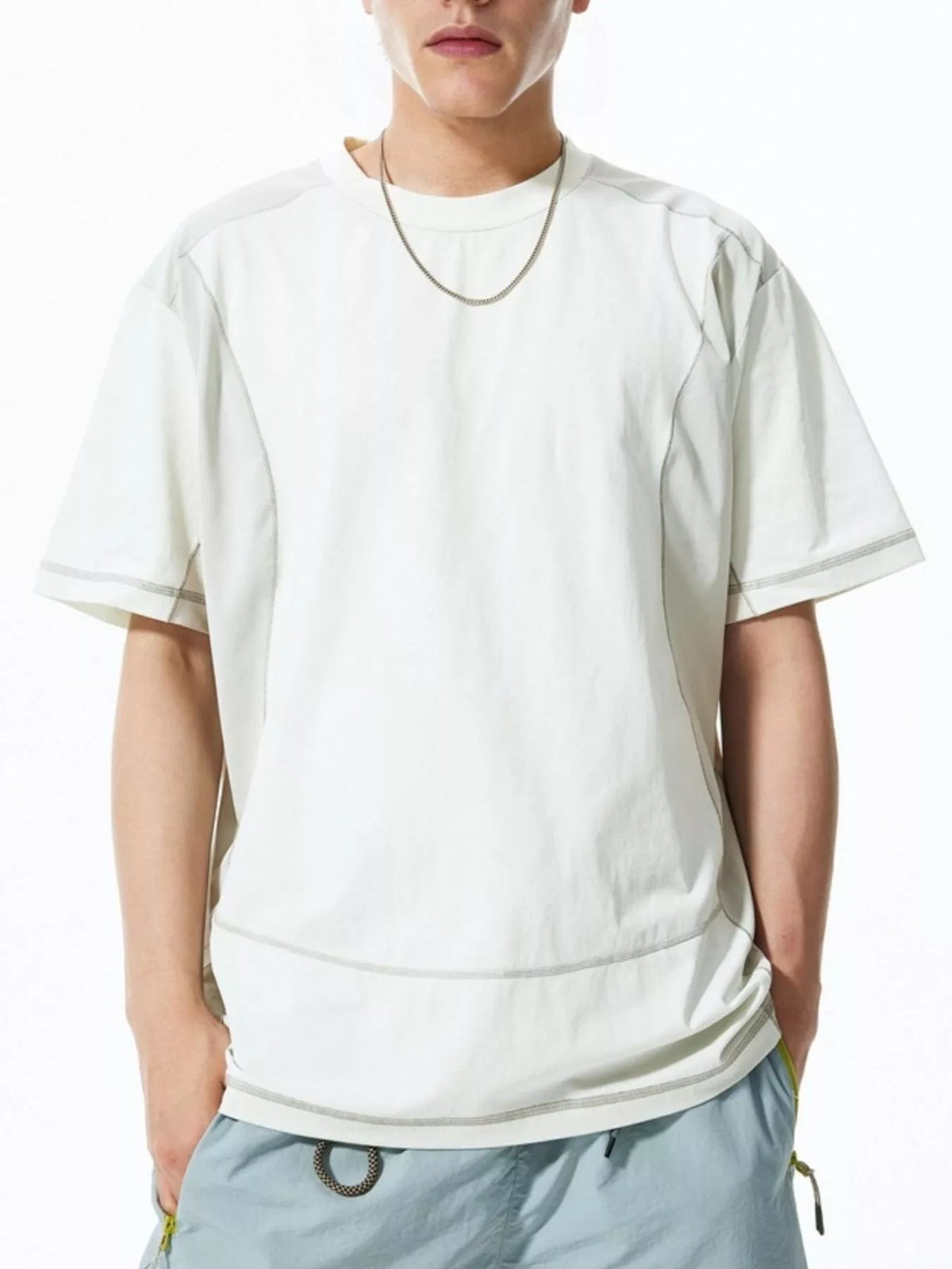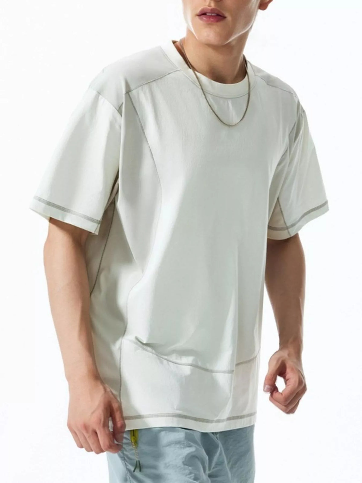 Men's Contrast Stitching Relaxed Fit T-Shirt - Coconut Milk White / M