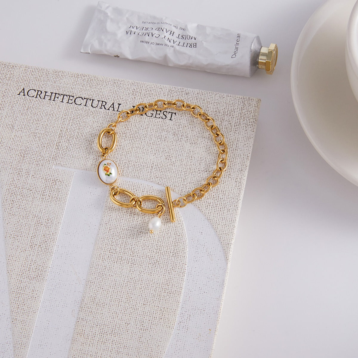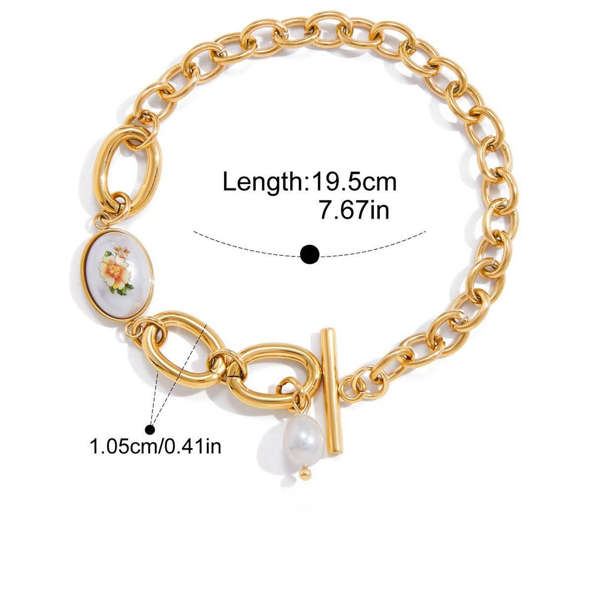 18K gold-plated, lightweight, and luxurious titanium steel bracelet with freshwater pearls.