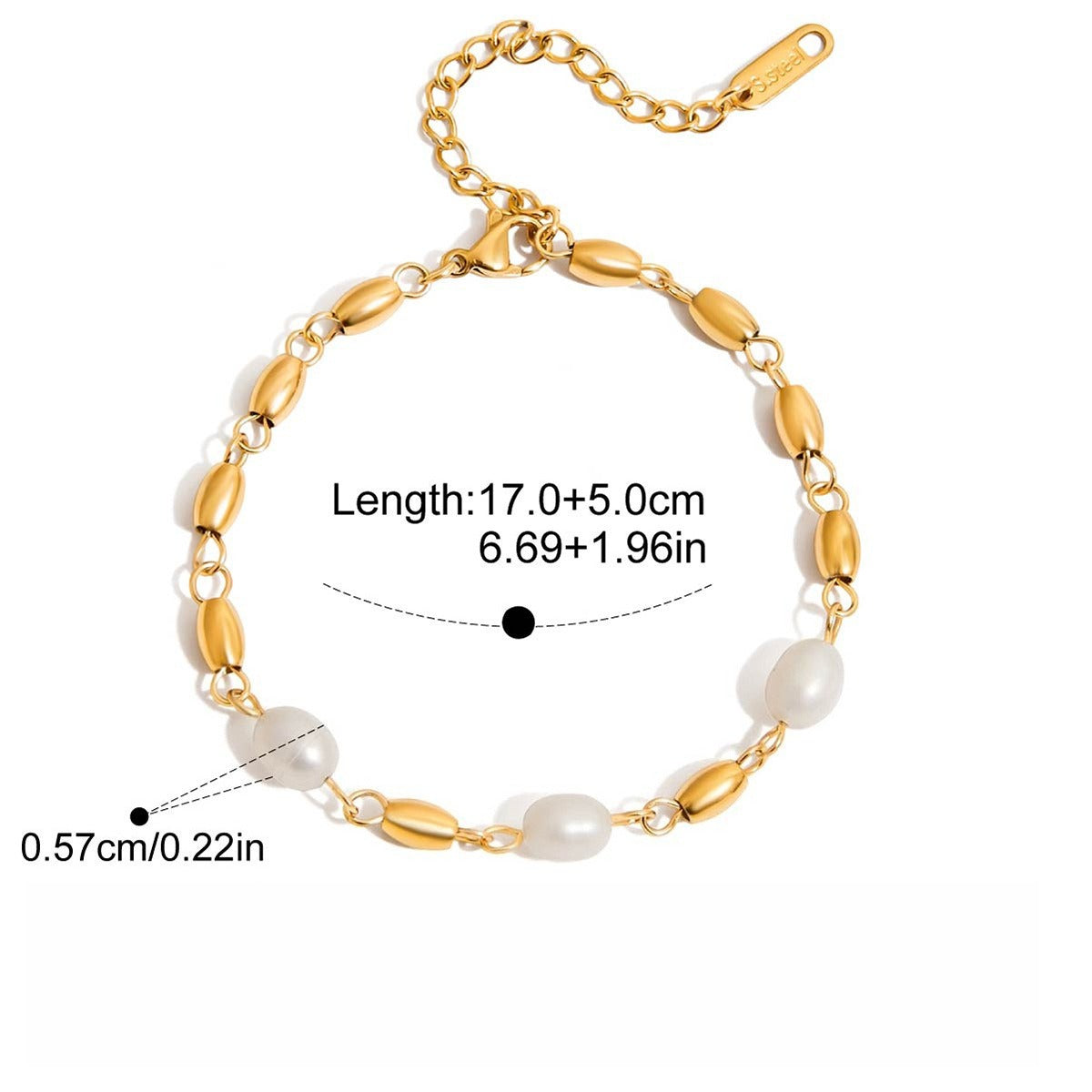 18K gold-plated, lightweight, and luxurious titanium steel bracelet with freshwater pearls. - Bracelet A
