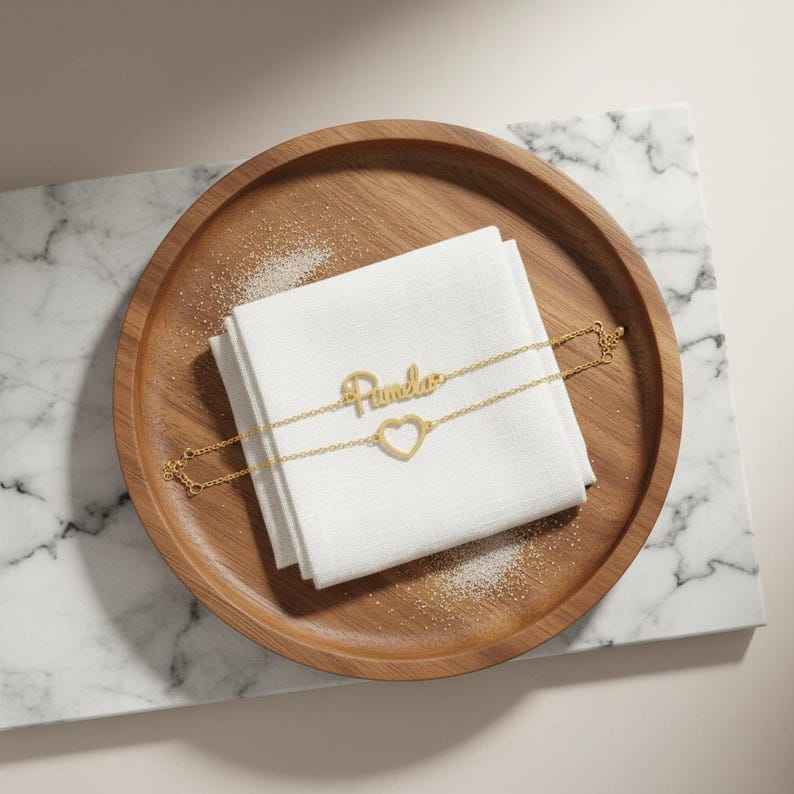 Customized Double-Chain Heart Name Bracelet - Copper / Silver / 5.5in (14cm)