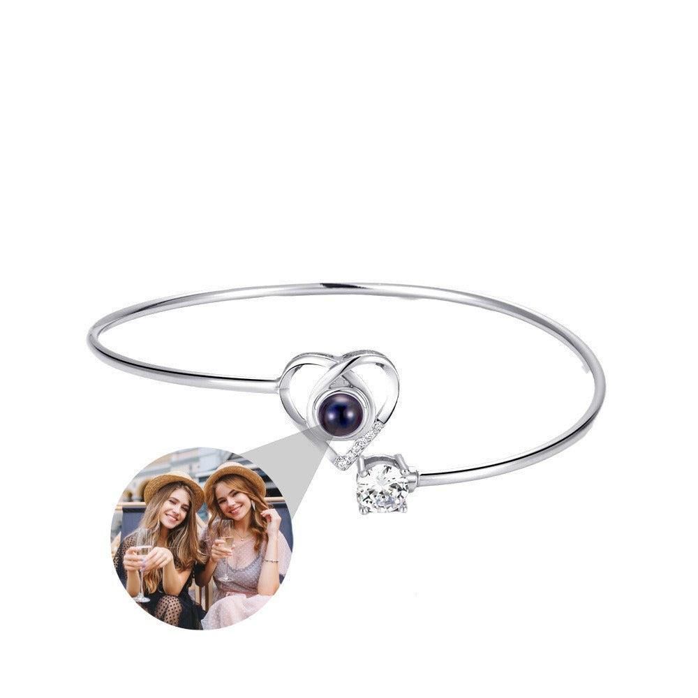Customized Heart Photo Projection Bangle Bracelet - S925 Silver / Oniy
