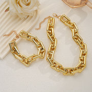 Geometric Rectangular Chunky Chain Bracelet and Necklace Set