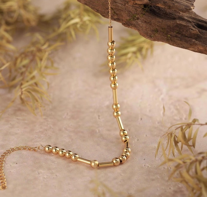 Simple Luxury: The overall design is simple and stylish with smooth lines. Round beads represent dots (·), and long beads represent dashes (—), transforming text into hidden Morse code.