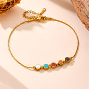 This retro-inspired, colorful, round smiley face interlocking titanium steel bracelet perfectly combines playful smiles with vintage circles. It's durable and effortlessly luxurious, yet playful, and perfect for those seeking a unique and fashionable look.