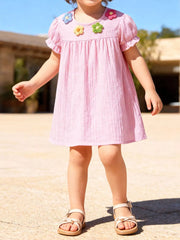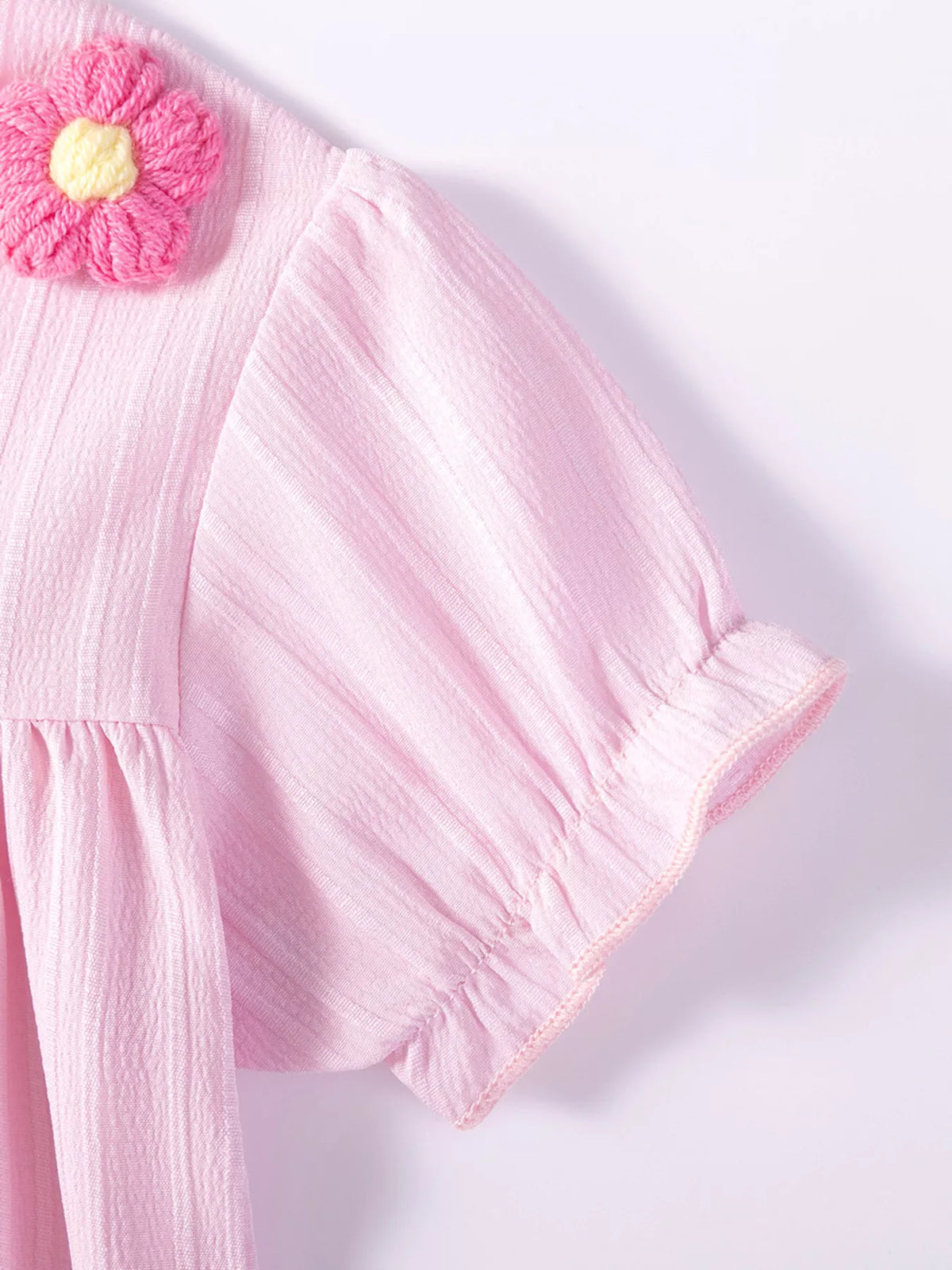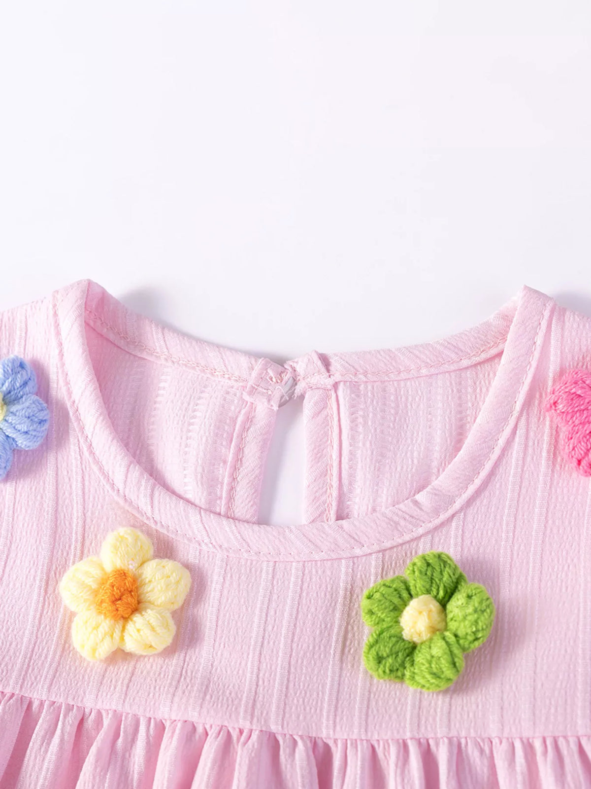 Children's Floral Ruffled Sleeve Dress - Blush Pink / 2Y