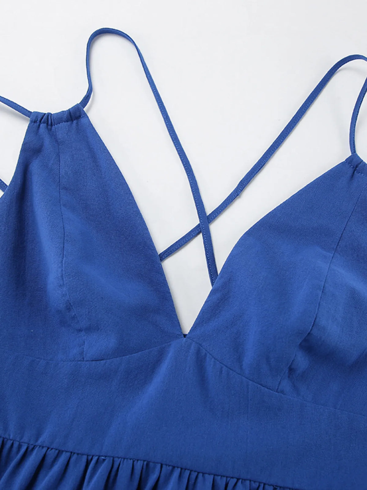 V-Neck Tiered Maxi Cami Dress - Blue / S