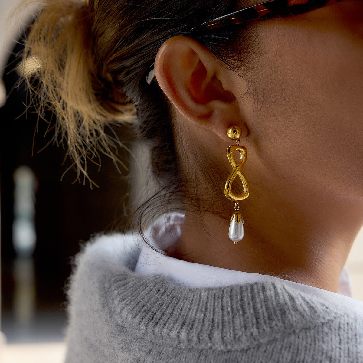 These 18K gold figure-eight titanium steel earrings for autumn/winter feature a minimalist "8" shape as their design core, blending geometric beauty with a warm metallic luster. Understated yet highly stylish, they are a sophisticated finishing touch for autumn and winter outfits.