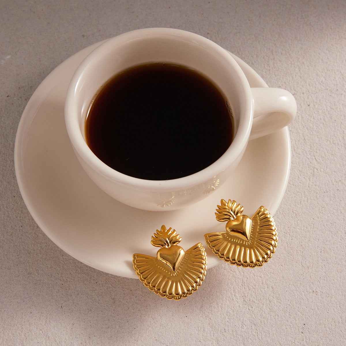 Inspired by the classic heart motif, these earrings combine the luster of 18K gold with the durability of titanium steel, presenting a simple yet sophisticated light luxury style that subtly conveys a gentle sentiment.