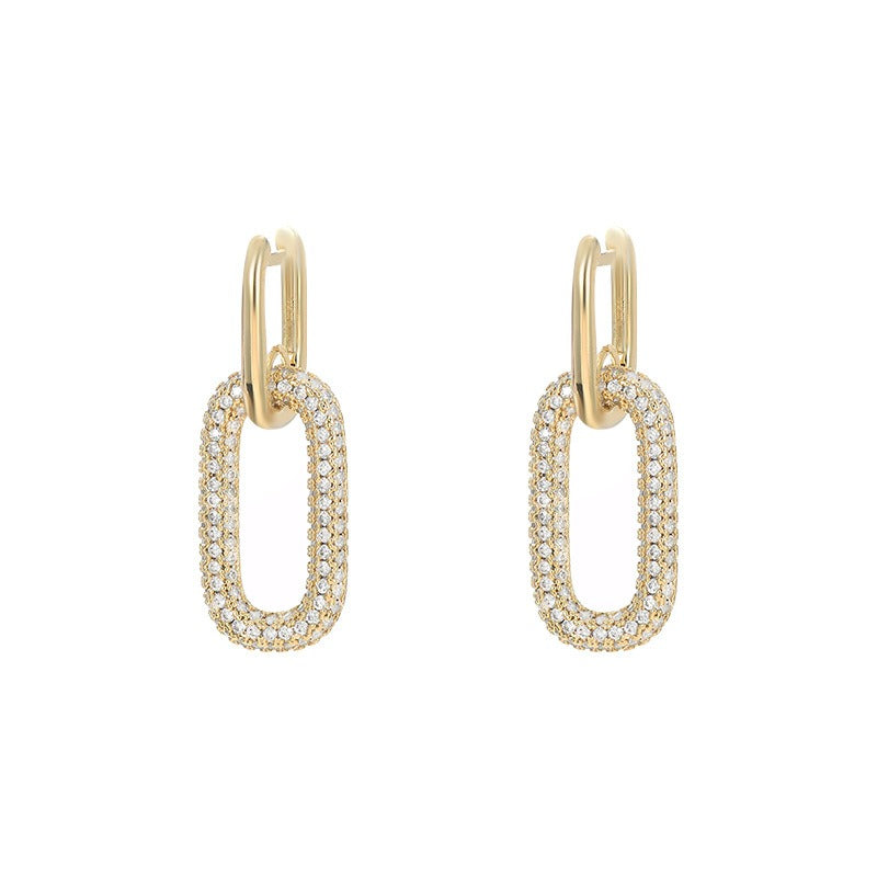 18K gold oval hoop earrings inlaid with cubic zirconia. - Gold
