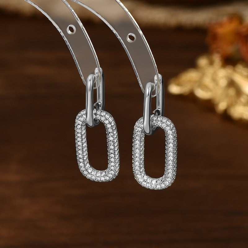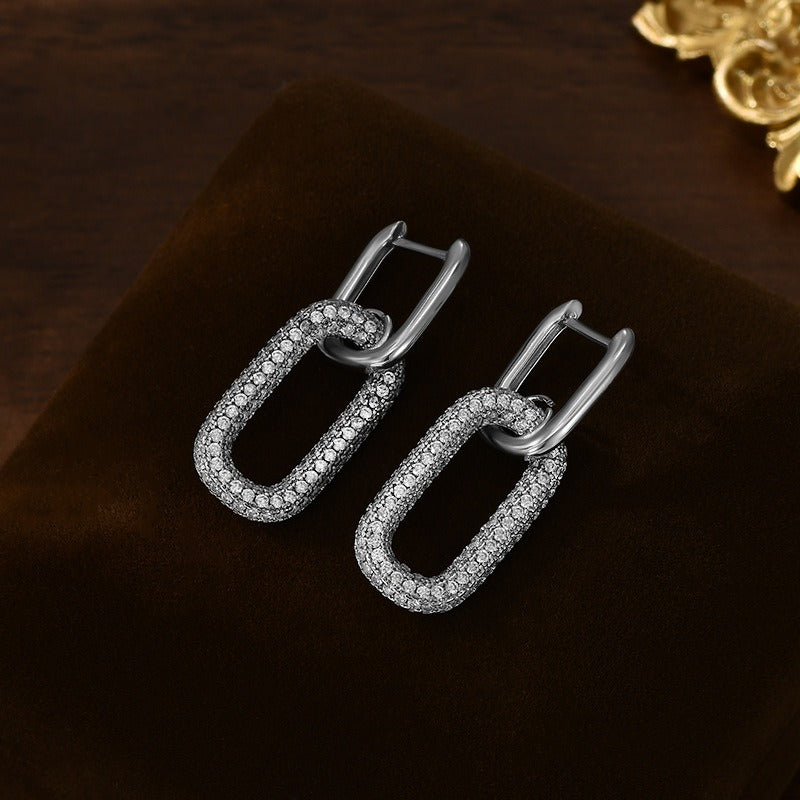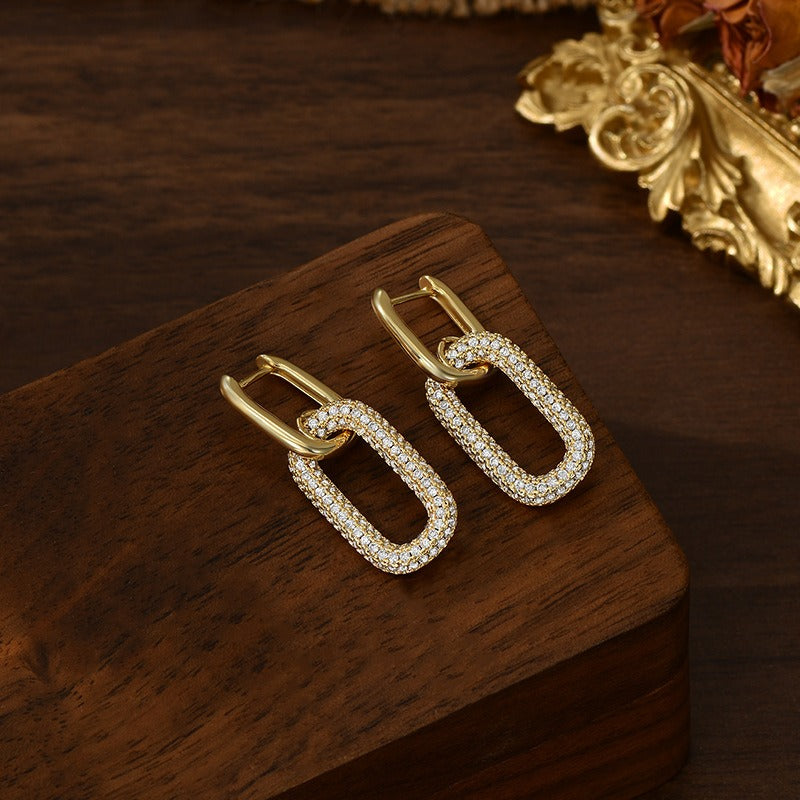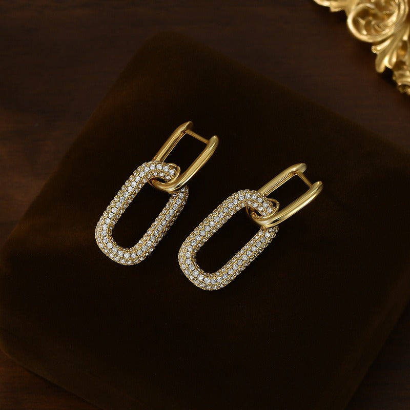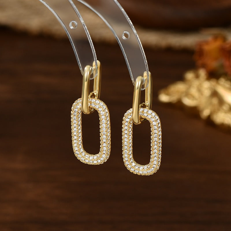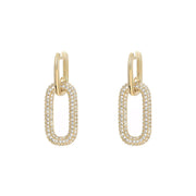 18K gold oval hoop earrings inlaid with cubic zirconia.