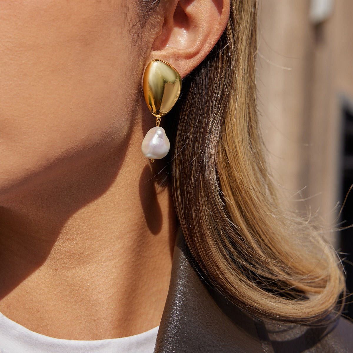 These 18K gold pearl and titanium steel earrings interpret light luxury aesthetics with a simple design, allowing elegance to naturally shine through in the details.
