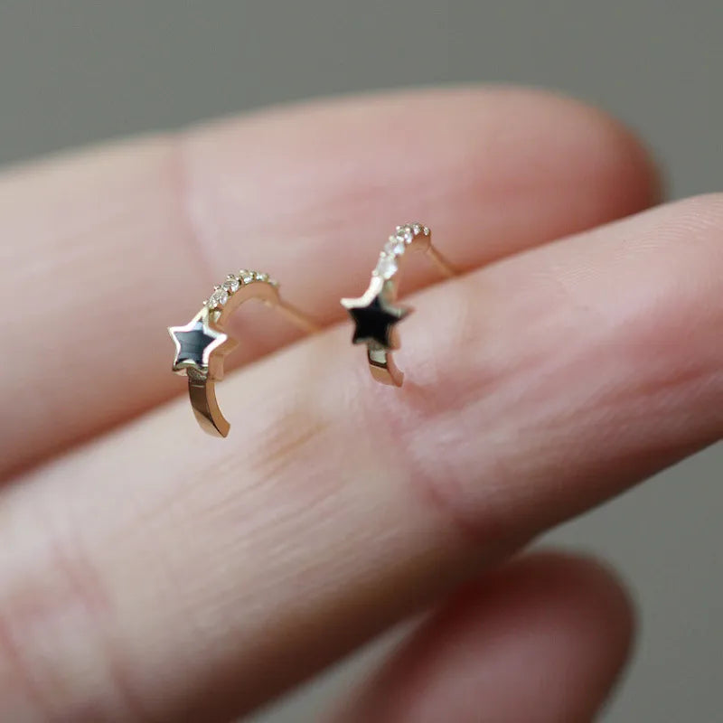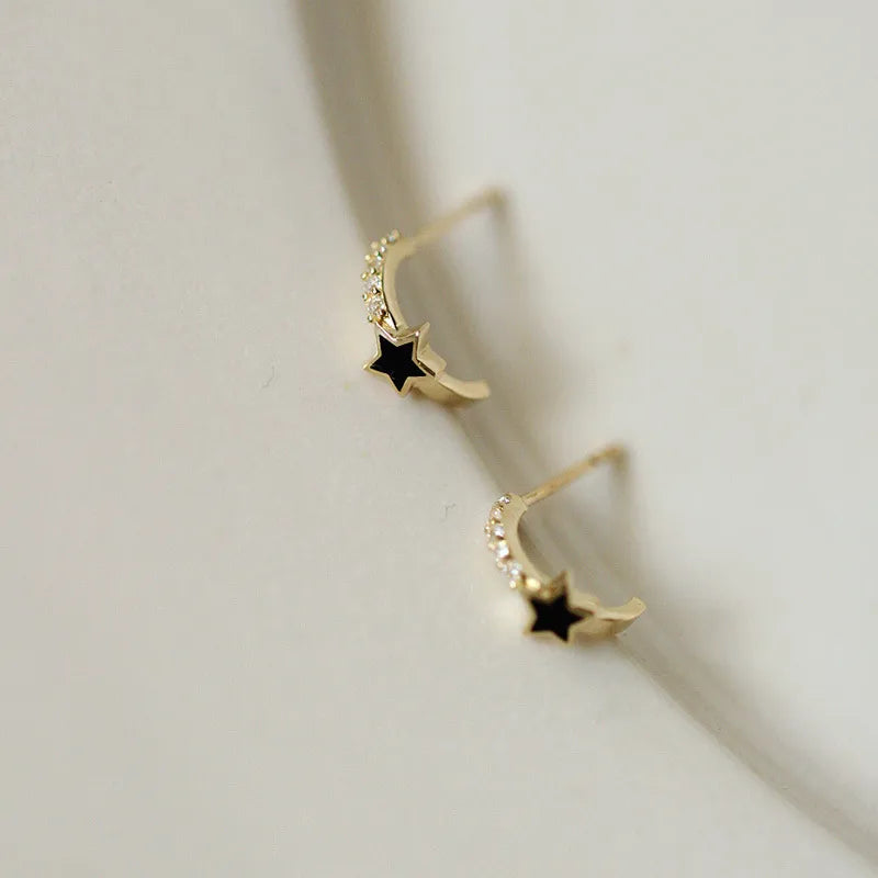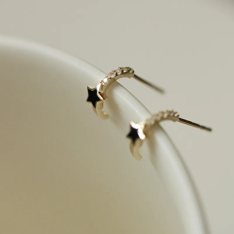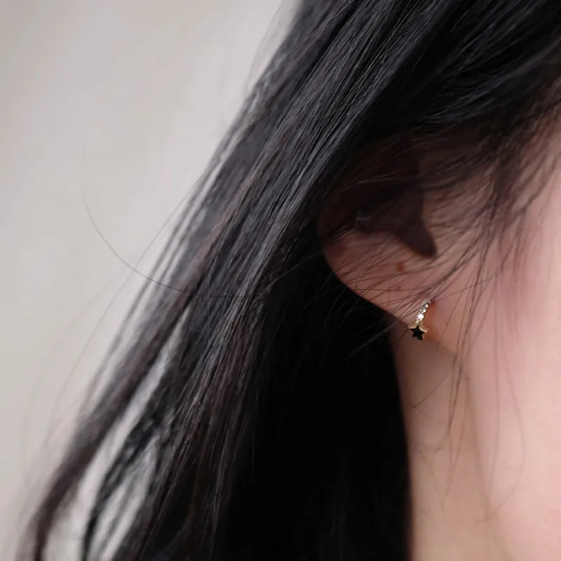 925 Sterling Silver Silver 14K Gold Plated Star Design Earrings Black Resin Half Hoop Ear Clips Rose Gold Date Jewelry