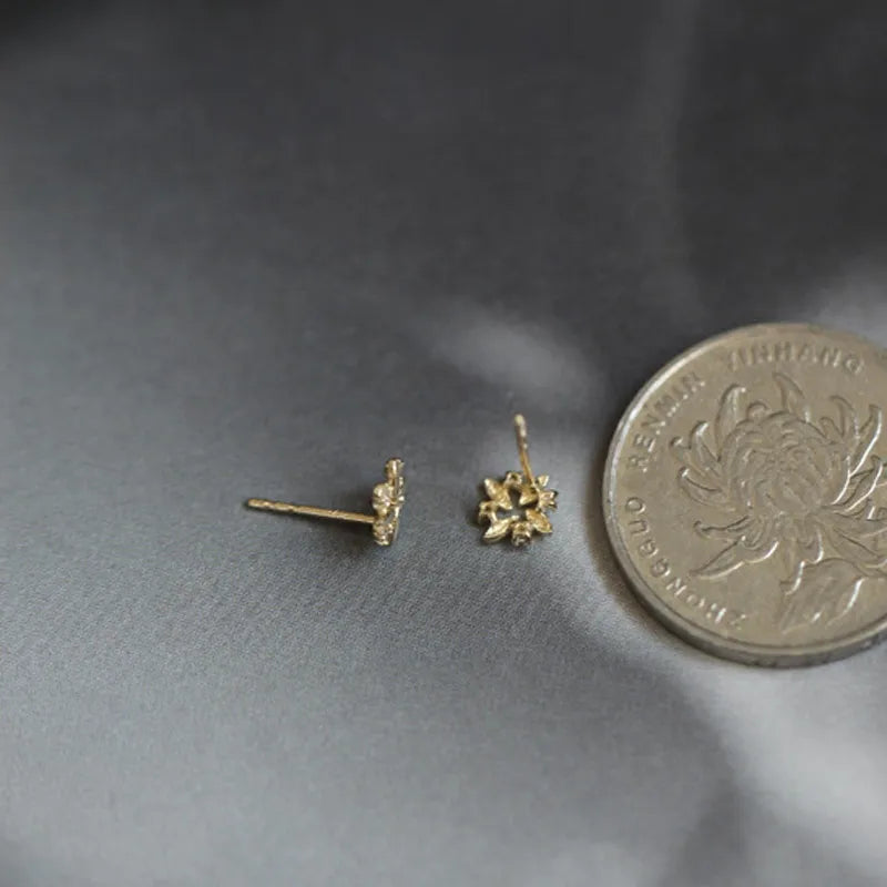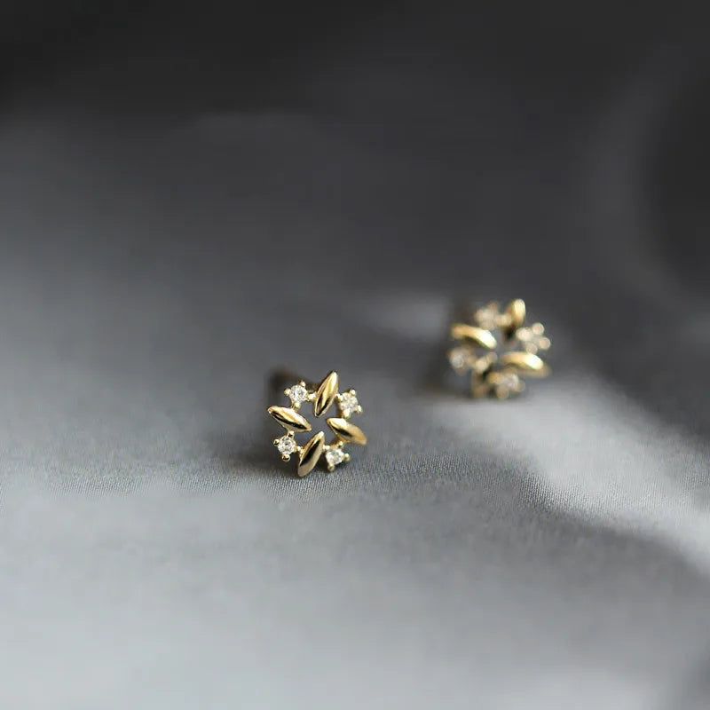 925 Sterling Silver Silver 14K Gold Plated Zirconia Stone Small Windmill Shape Earrings Retro Women's Jewelry