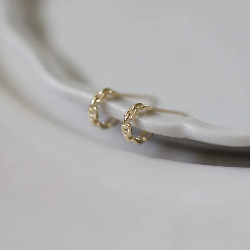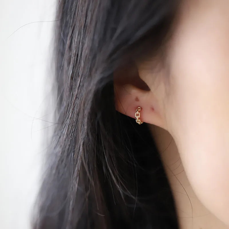 925 Sterling Silver Silver Plated 14K Gold Square Chain Earrings for Women Classic Ear Clips