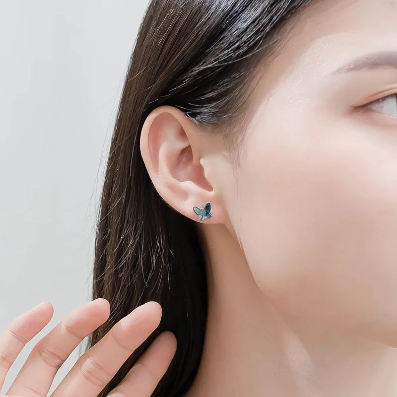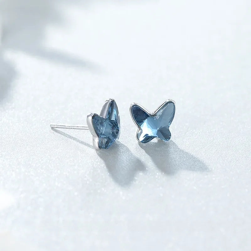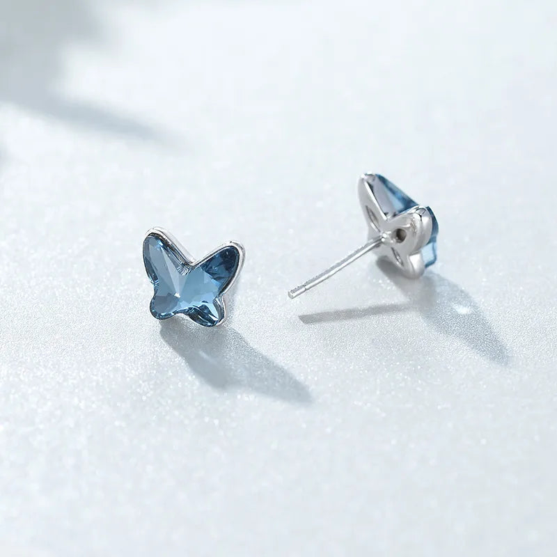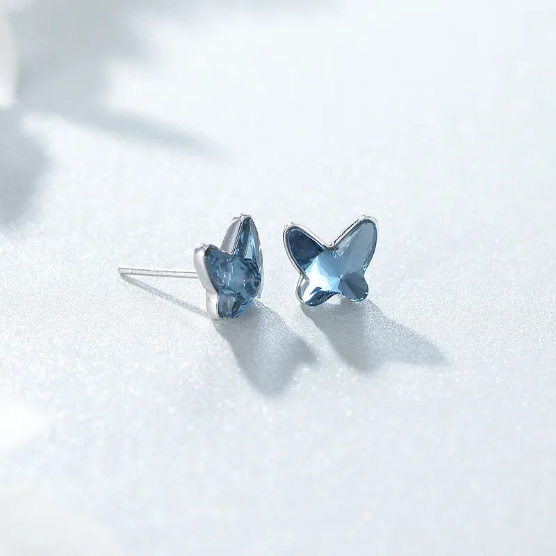 Blue Butterfly Crystal Earrings for Women S925 Sterling Silver Silver High-end Simple Jewelry Stud Earrings Accessories