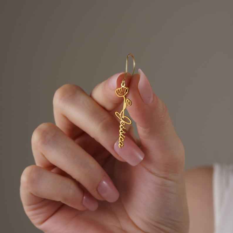 Custom Engraved Script Name Stud Earrings - Copper / Silver / Only