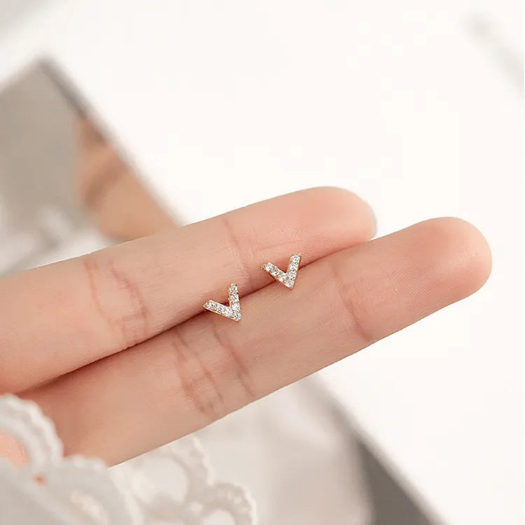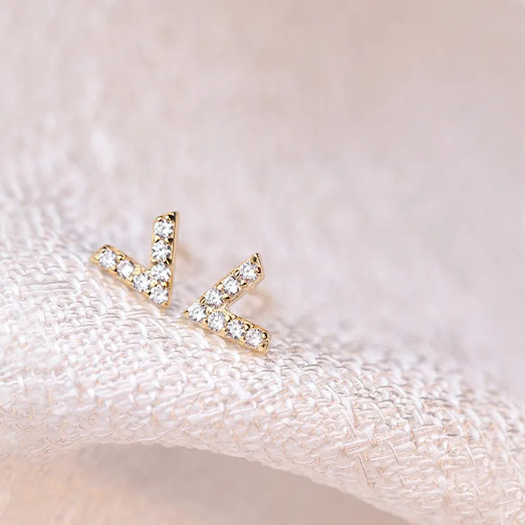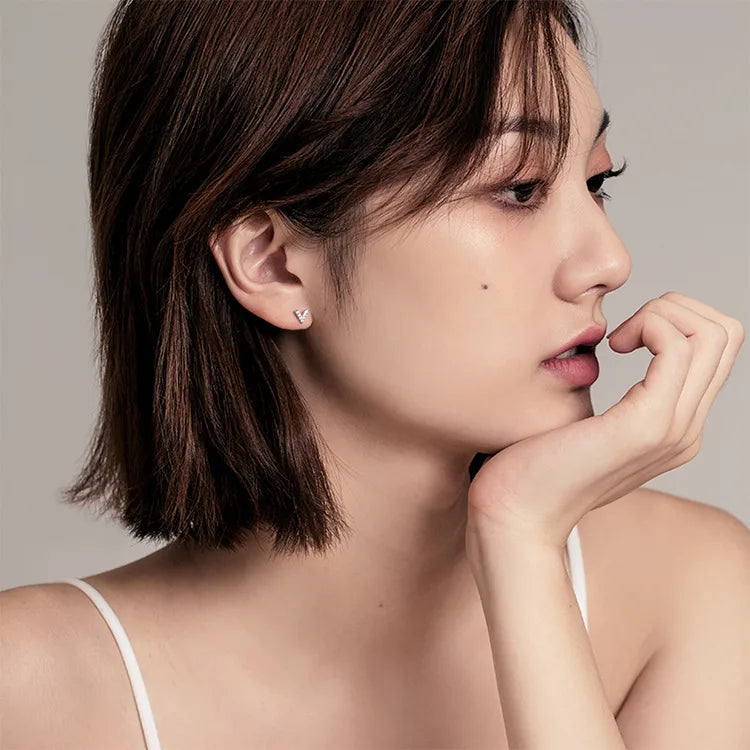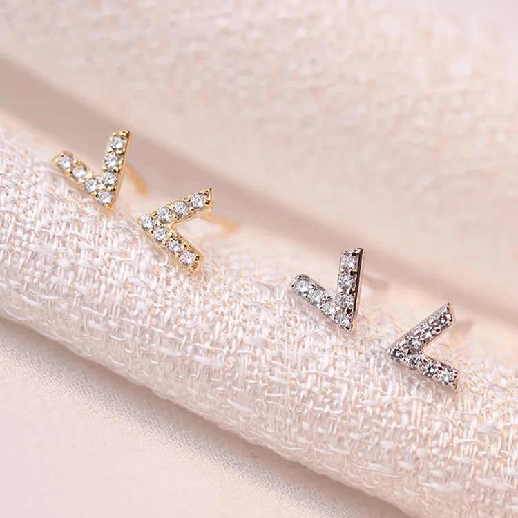 Fashion New 925 Sterling Silver Silver 14K Gold Plated Earrings for Women with Small Crystal Inlay Studs