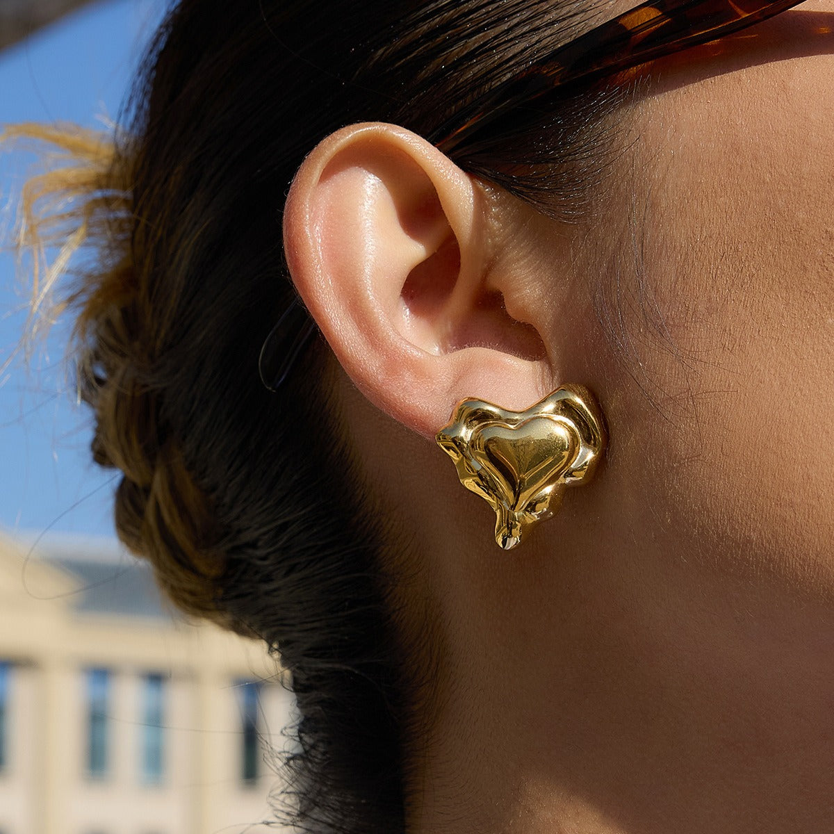 Heart-shaped stud earrings, high-end autumn/winter jewelry.