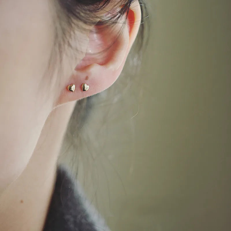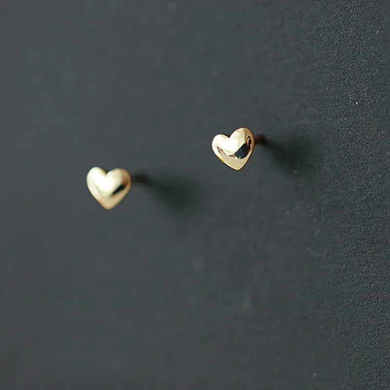 Mini Heart-shaped Earrings 925 Sterling Silver Silver Gold-plated 14K Gold Smooth Small Heart-shaped Women's Earrings
