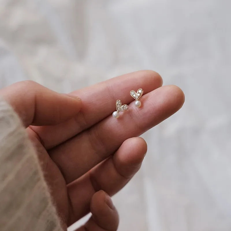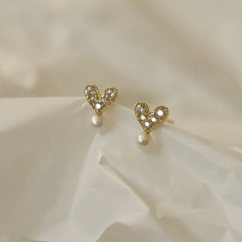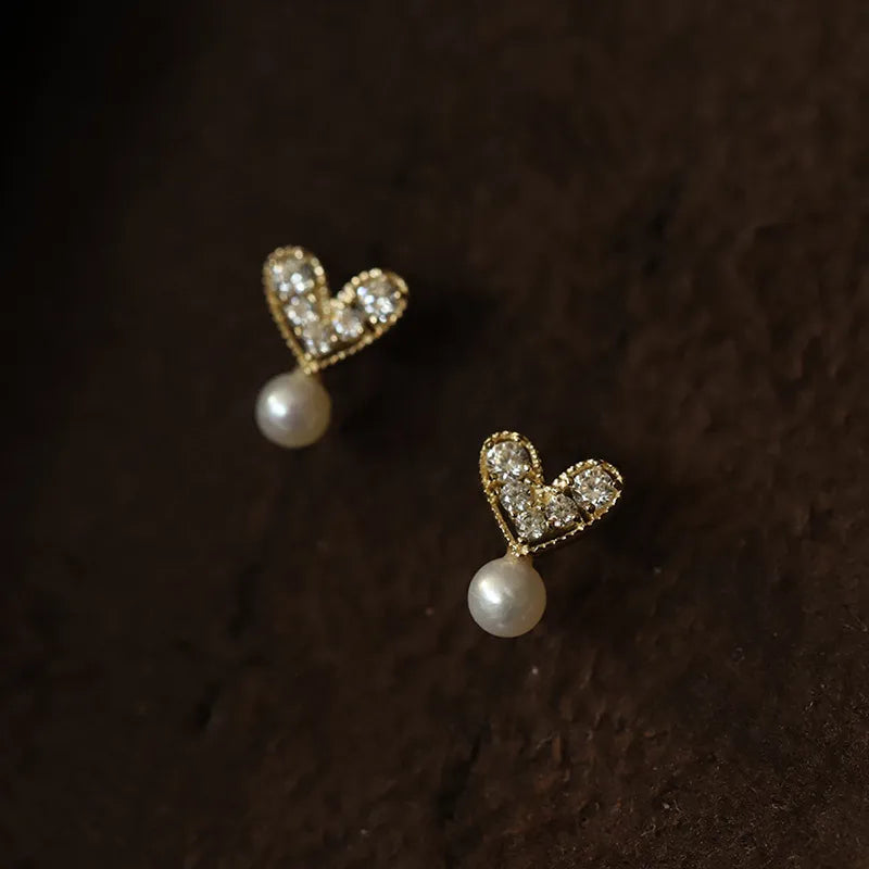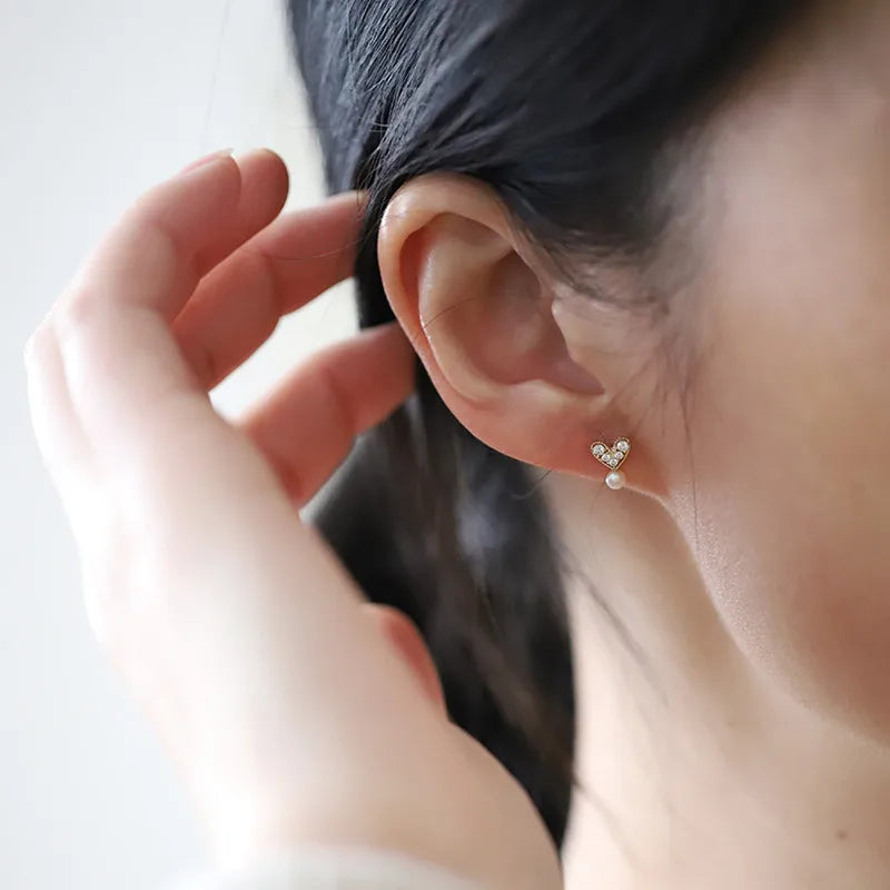 Pearl Heart-shaped Stud Earrings S925 Sterling Silver Rose Gold Plated Women Jewelry Casual Design