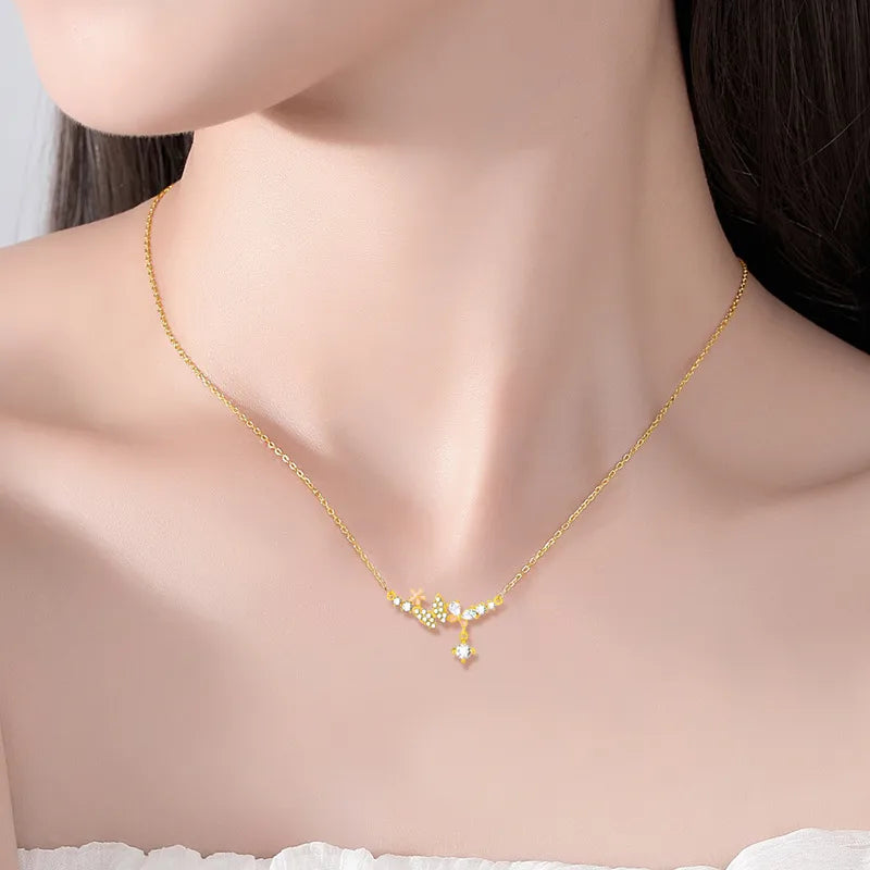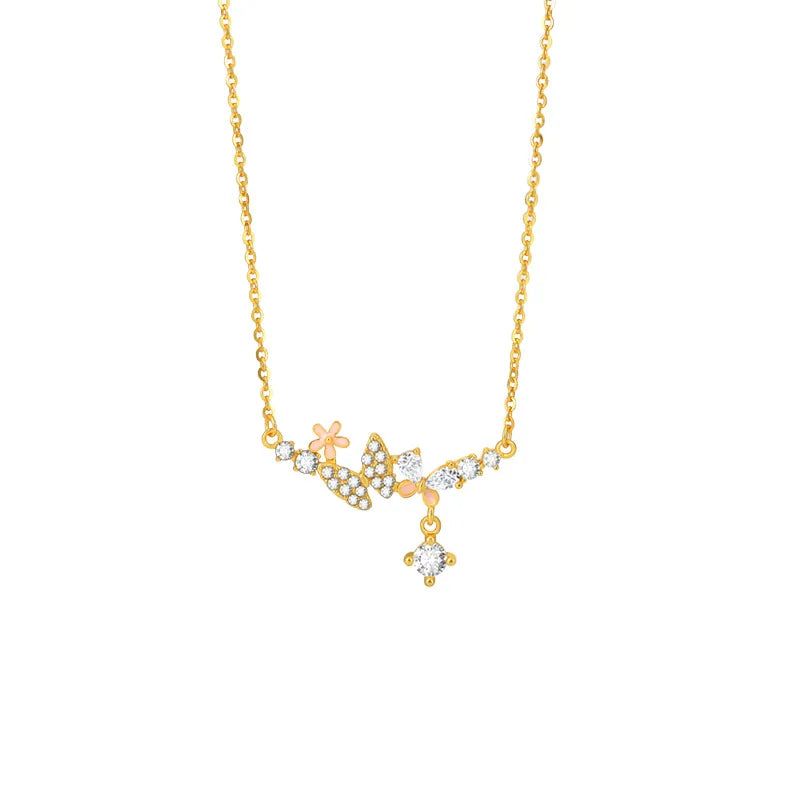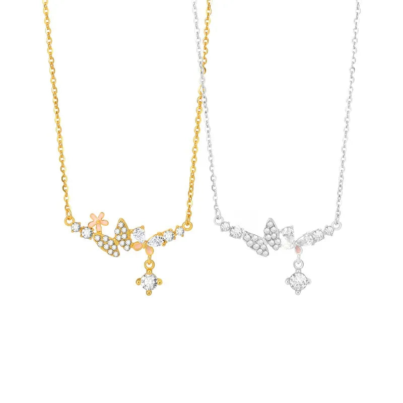 Butterfly Crystal Necklace for Women S925 Sterling Silver Silver High-end Pendant with Rhinestone Lobster Clasp Gift for Girlfriend - 22k Gold / 925 Silver