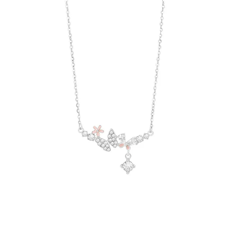 Butterfly Crystal Necklace for Women S925 Sterling Silver Silver High-end Pendant with Rhinestone Lobster Clasp Gift for Girlfriend