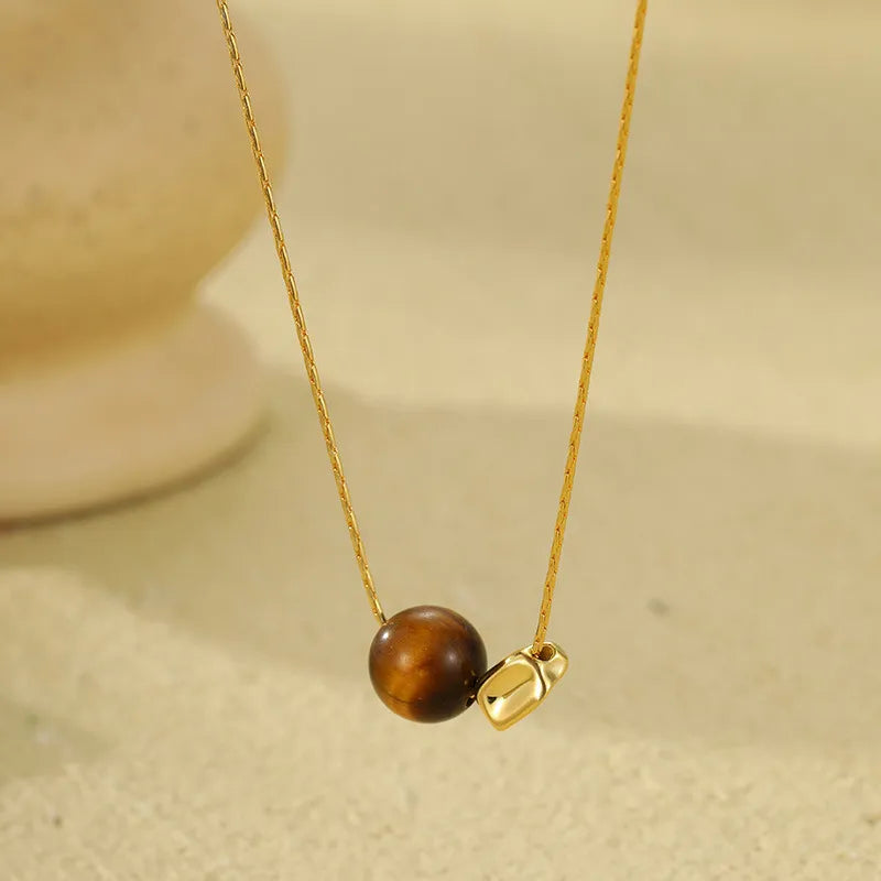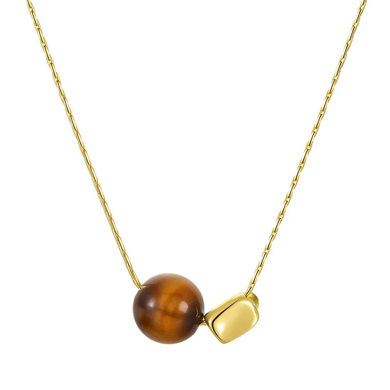 French Minimalist 925 Sterling Silver Silver Tiger Eye Stone Women's Necklace Cool Style Geometric Metal Block Beaded Choker - NS3611 [Gold Color]
