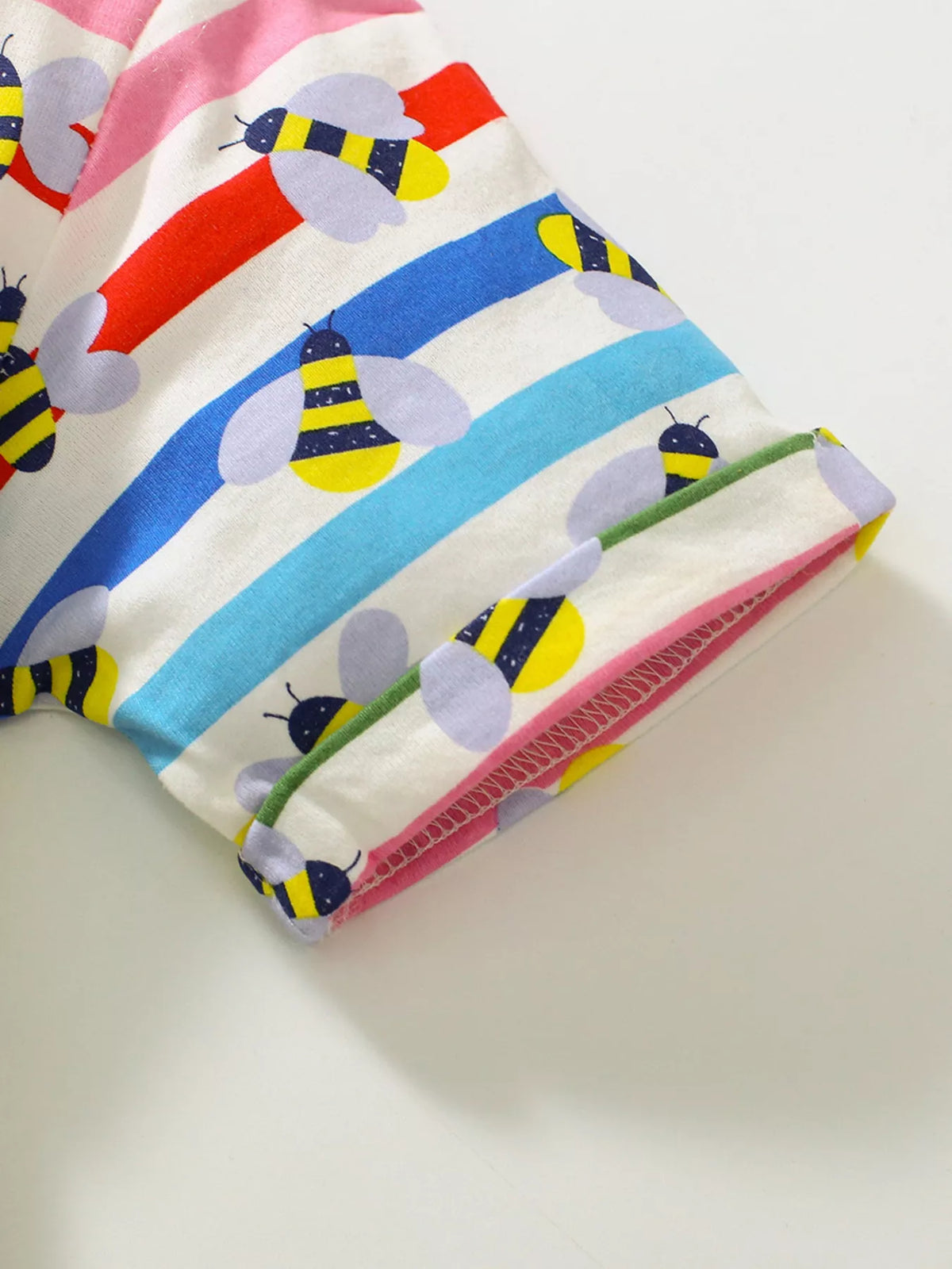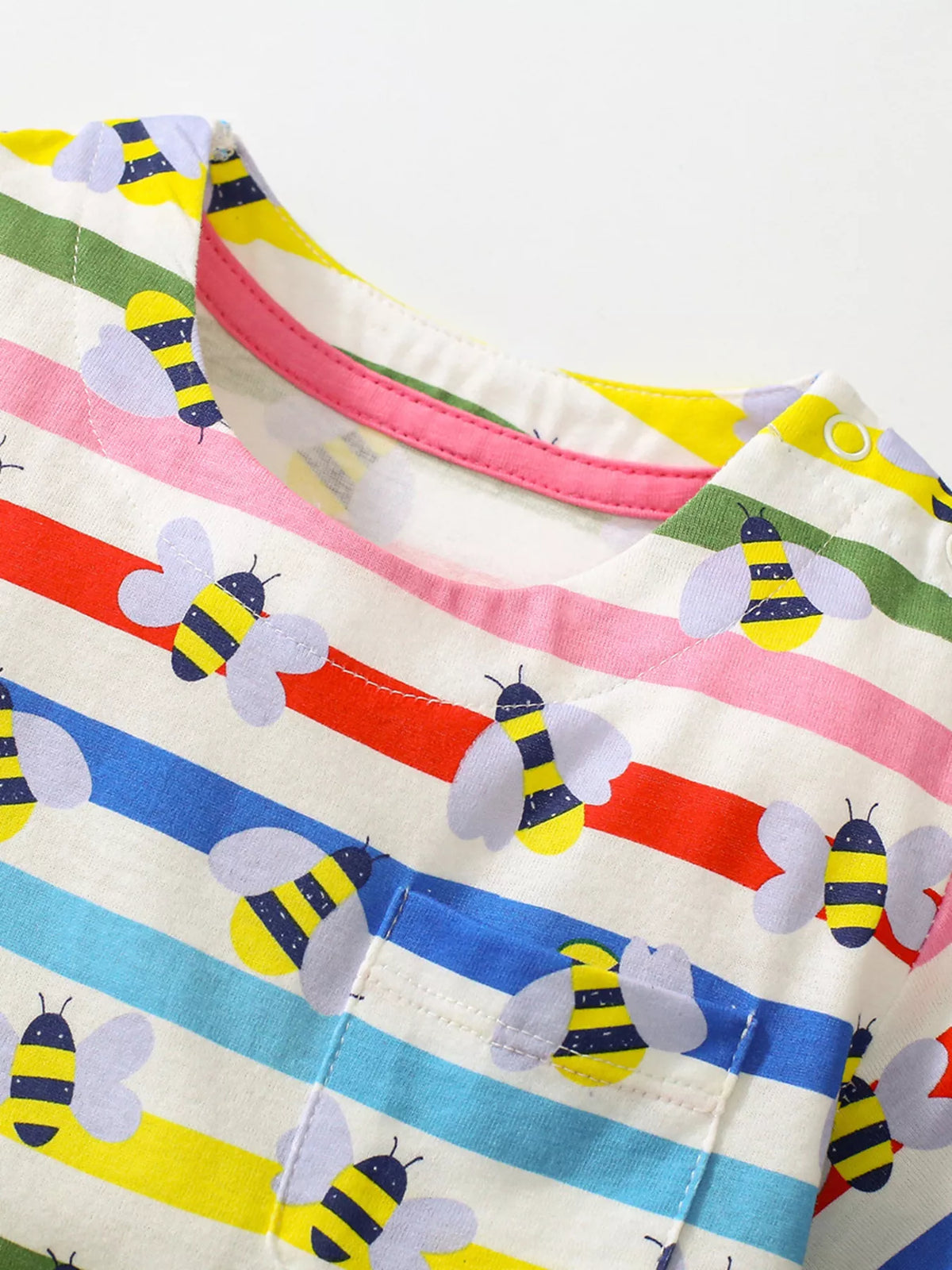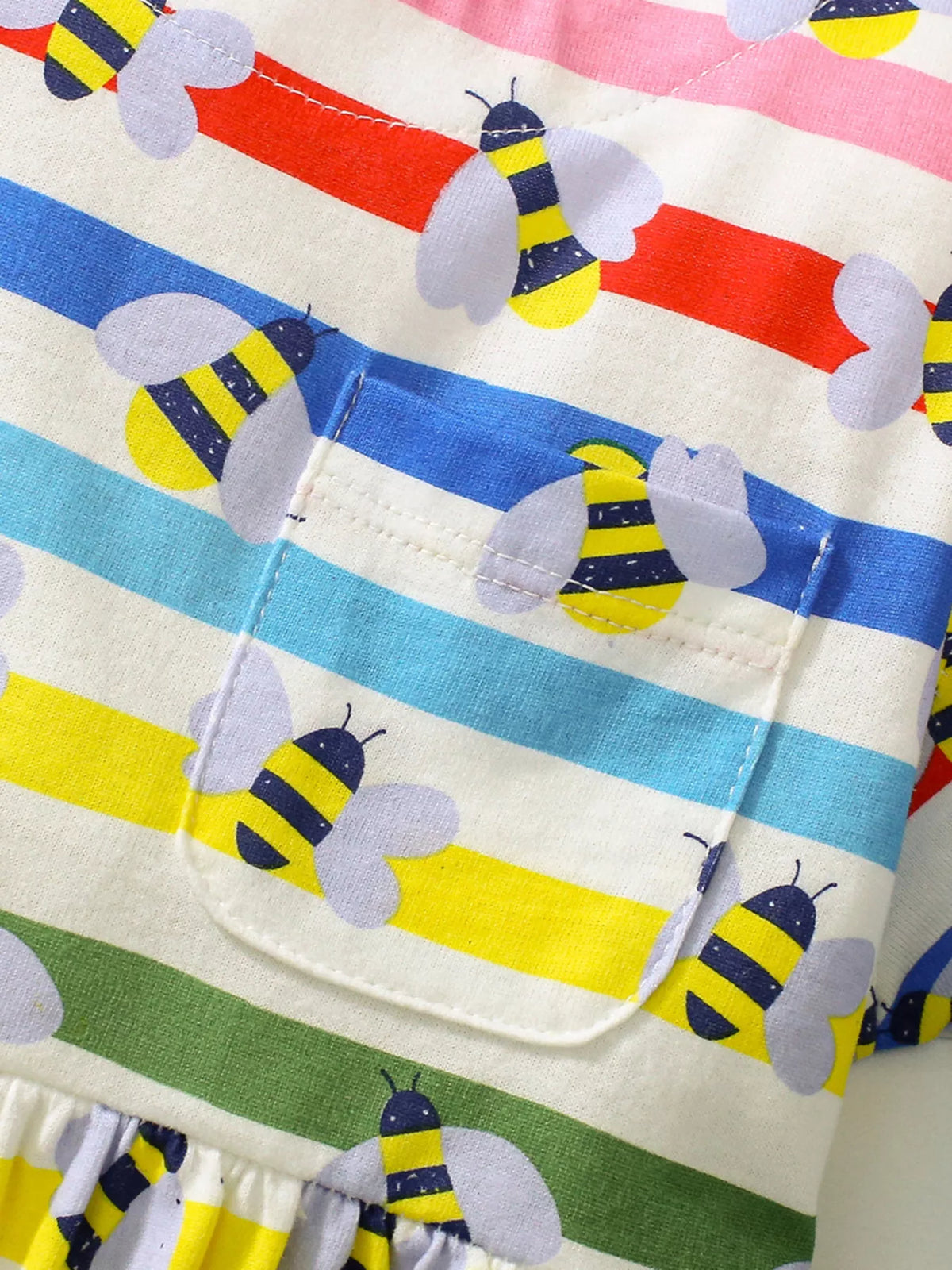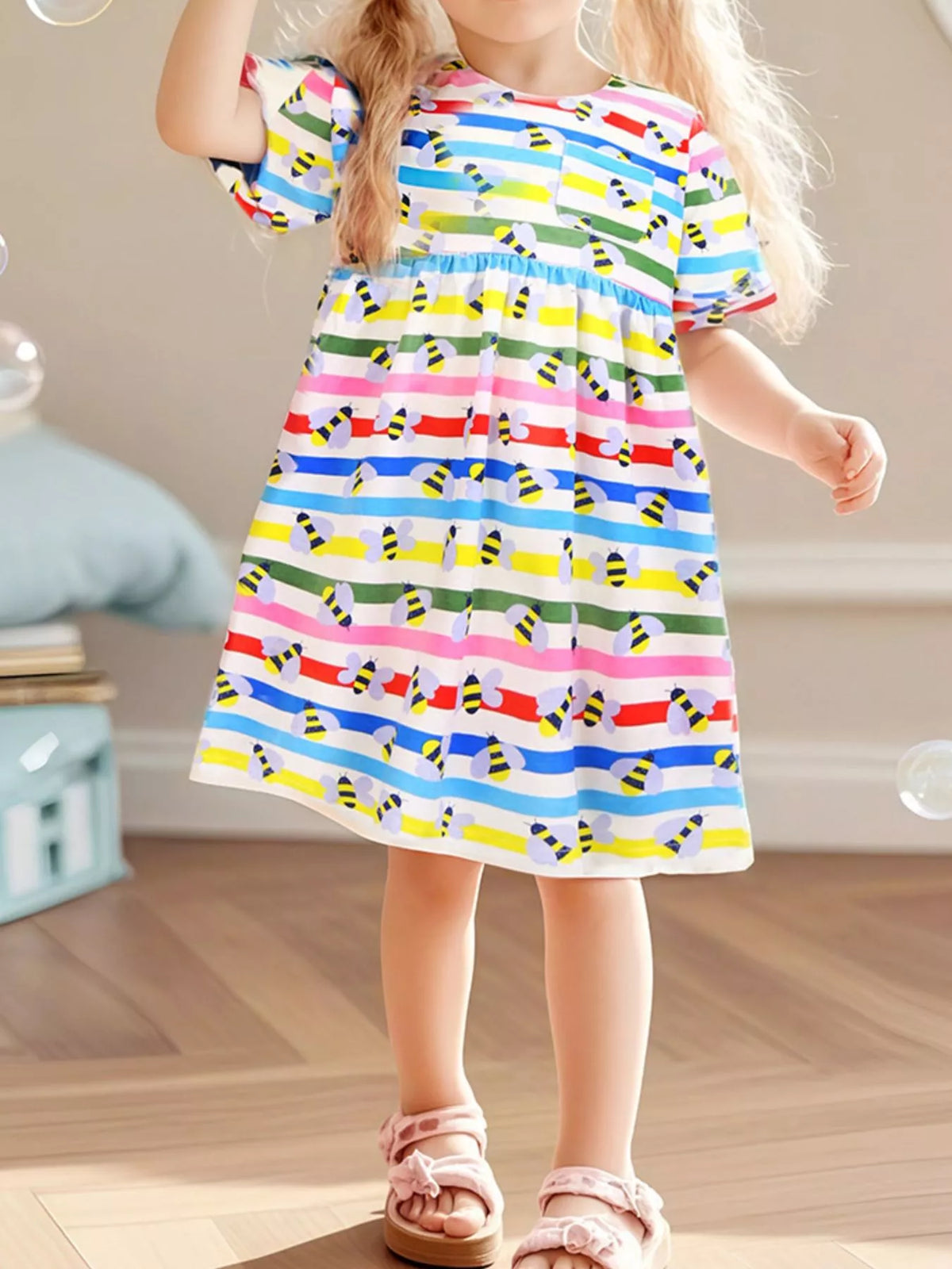 Children's Striped Bee Print Casual Dress - Multicolor / 2Y
