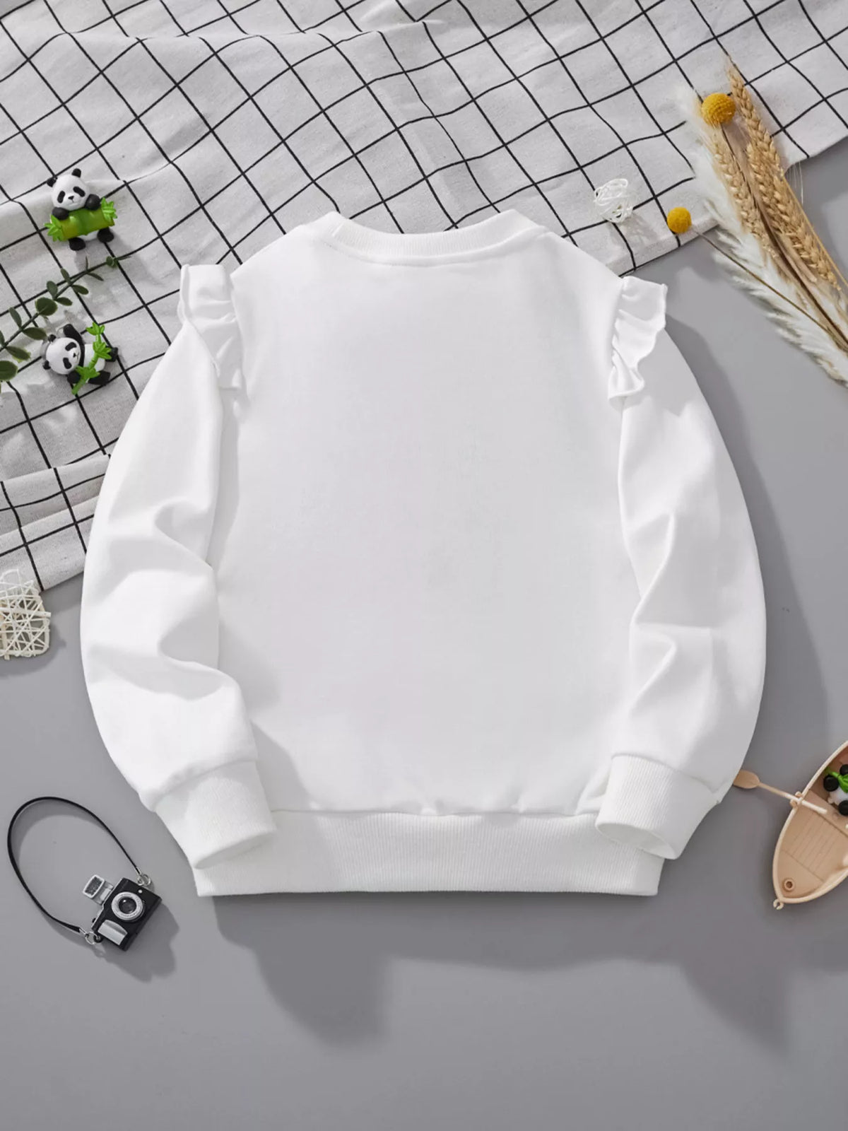 Children's Cat Graphic Ruffle Sleeve Sweatshirt - White / 3Y
