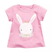 Children's Cute Bunny Applique Round Neck T-Shirt - Blush Pink / 2Y