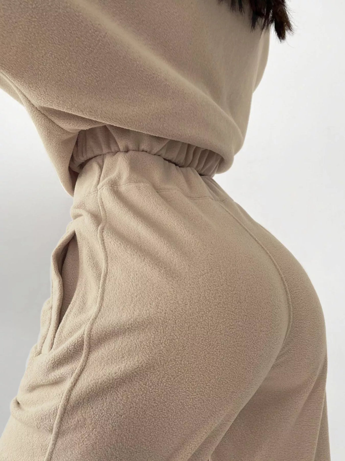 Half Zip Sweatshirt and Pants Set - Ivory / S