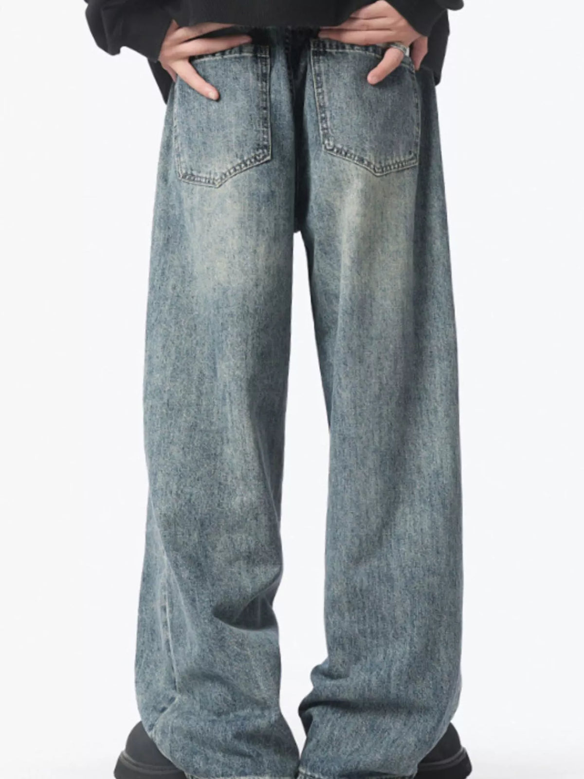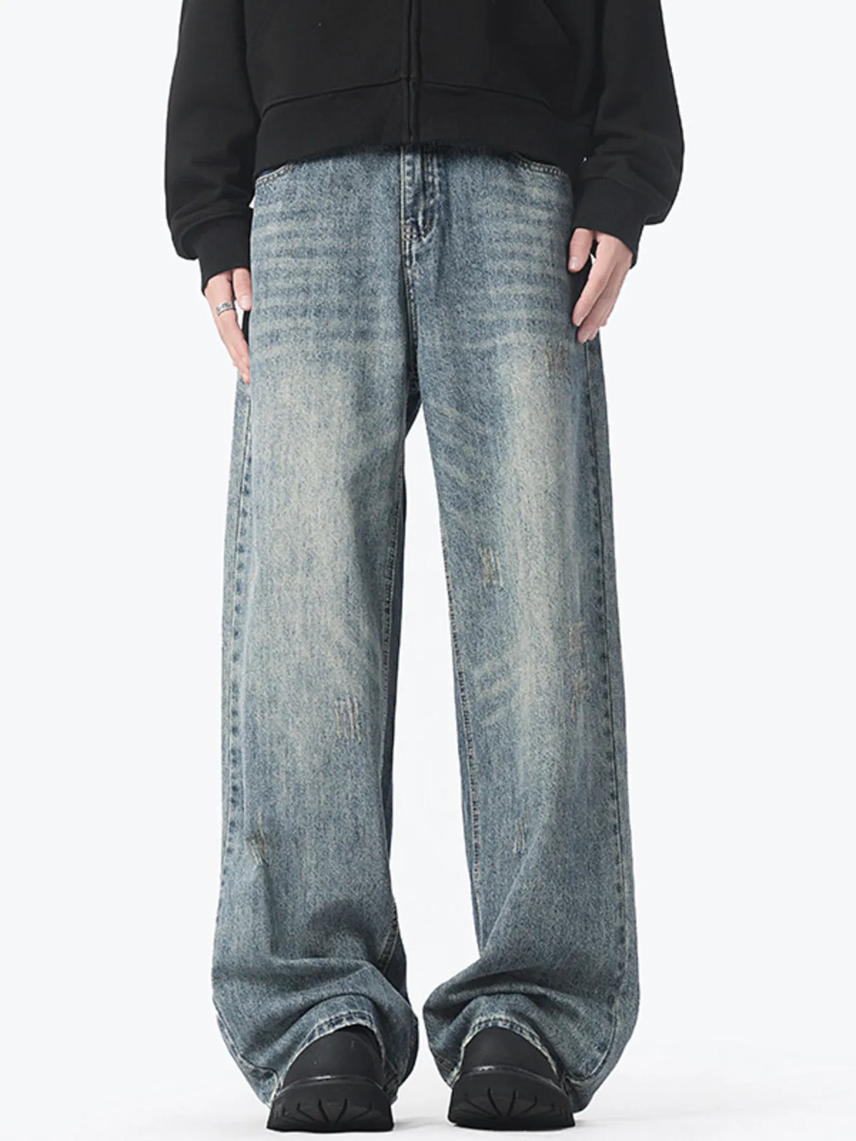 Men's Vintage Wash Wide Leg Jeans - Blue / S