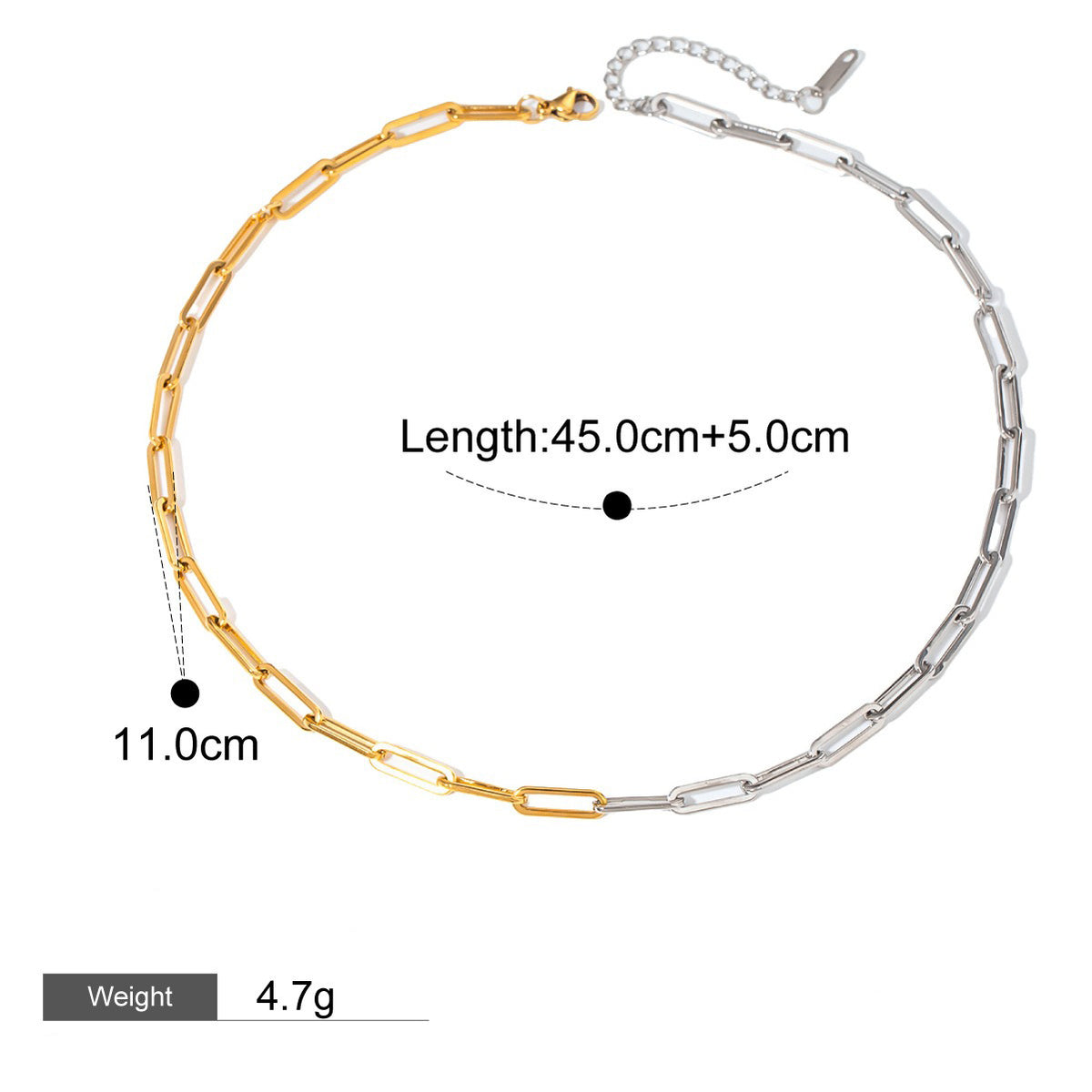 Gold and silver color matching ingenuity: Two of the chains use gold and silver color matching technology, and through the alternation of local chain link materials and colors, a visual contrast impact is created, making the necklace reveal a unique design sense and high-end temperament in simplicity.