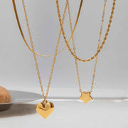 18K gold double chain with heart/star design exquisite simple necklace - Star