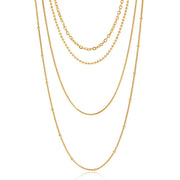This 18K gold layered necklace, with its perfectly balanced layering, instantly elevates simple outfits to a higher level of sophistication.