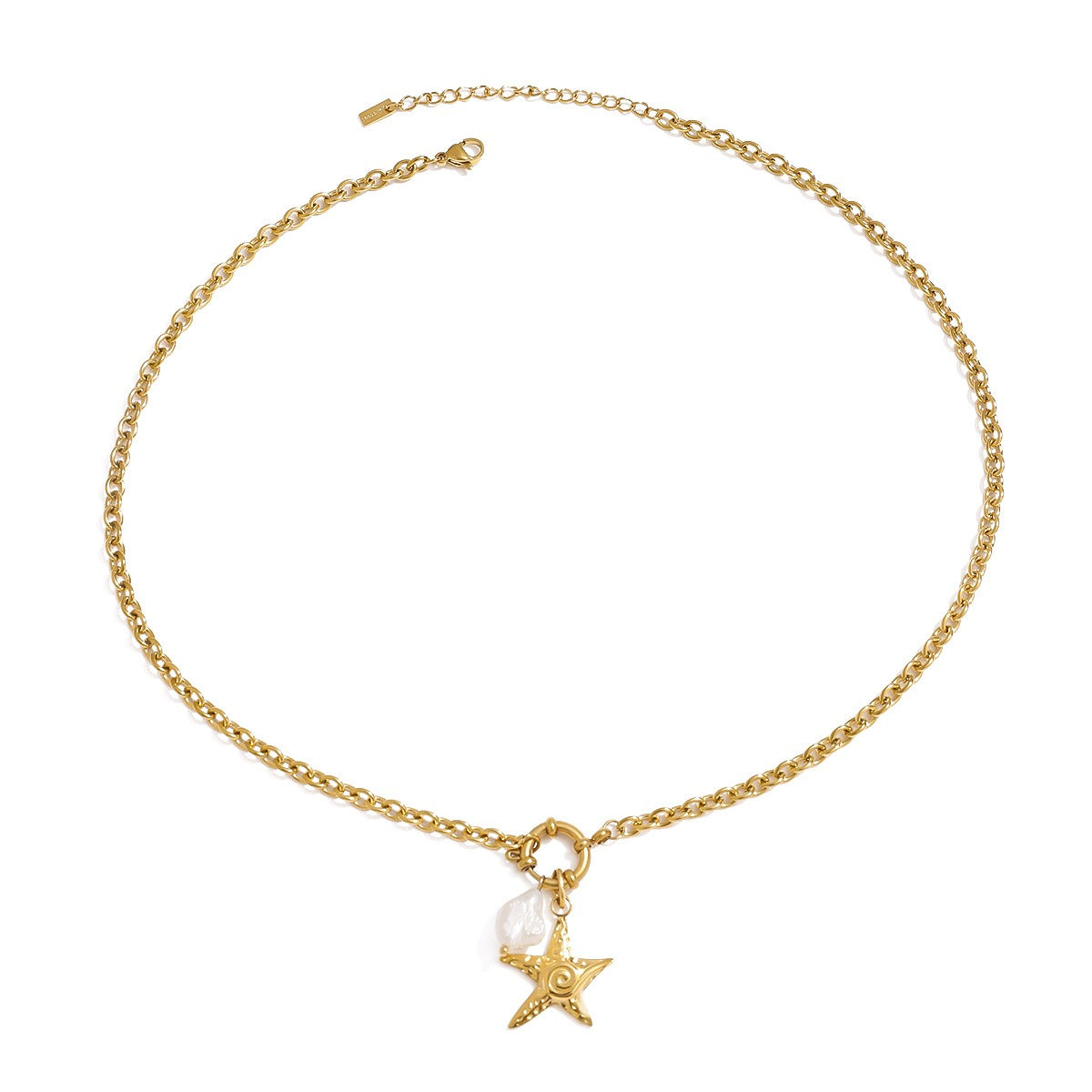 The marine images such as conch, starfish, fish, and shells are transformed into exquisite small pendants, and arranged in an orderly manner with fine chains, as if wearing a whole dream ocean around the neck, with rich details and rich layers, showing the wearer's independent confidence and romantic feelings.