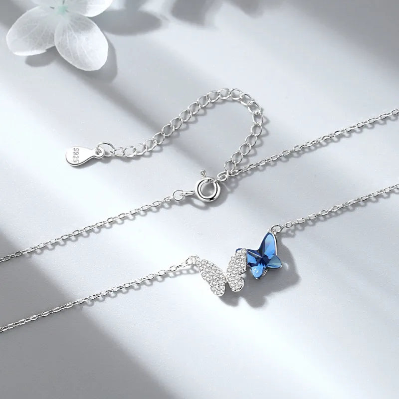 Butterfly Crystal Pendant Necklace for Women 925 Sterling Silver Inlaid with Silver Diamonds Jewelry Accessories