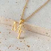 This necklace is a fashionable and personalized piece of jewelry, featuring a gold-tone design with elegantly intertwined "N" and "E" letter pendants. This unique design can represent initials, couple's abbreviations, or a combination of letters that holds special meaning. It adds a touch of sophistication and personalization to any daily style.