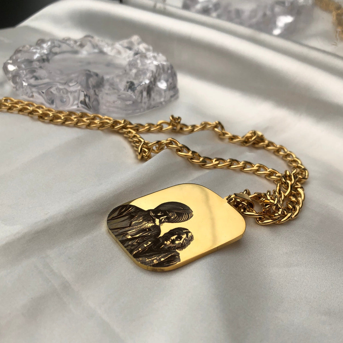 Customized Chunky Cuban Link Photo Engraving Necklace