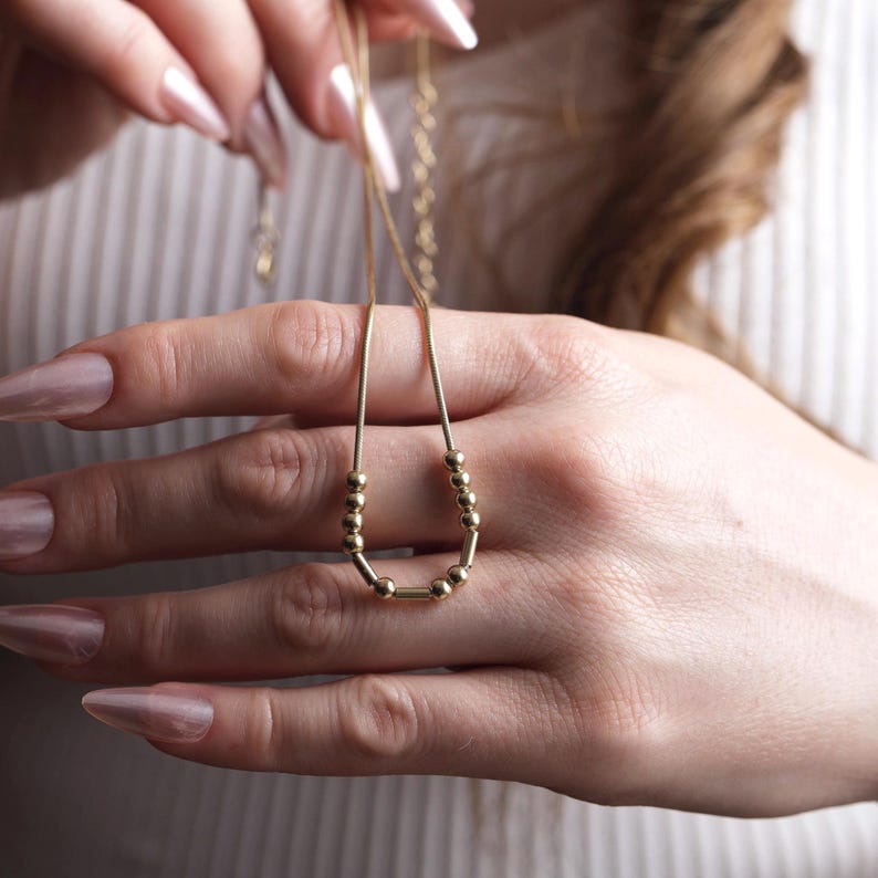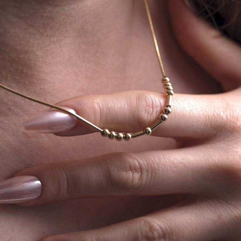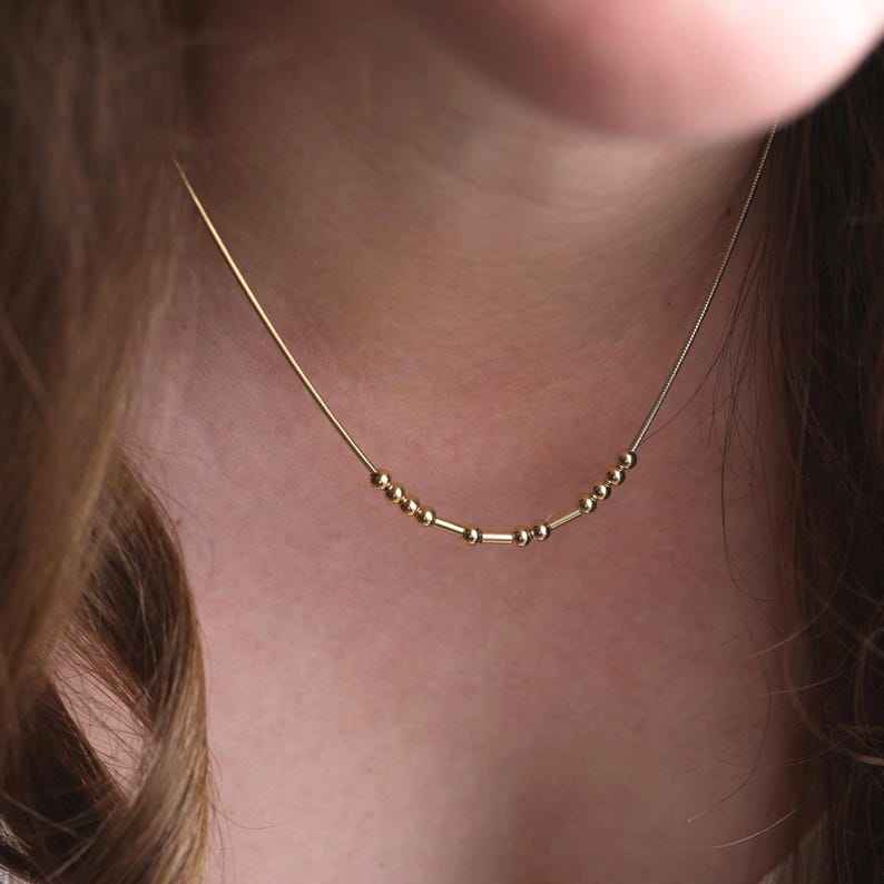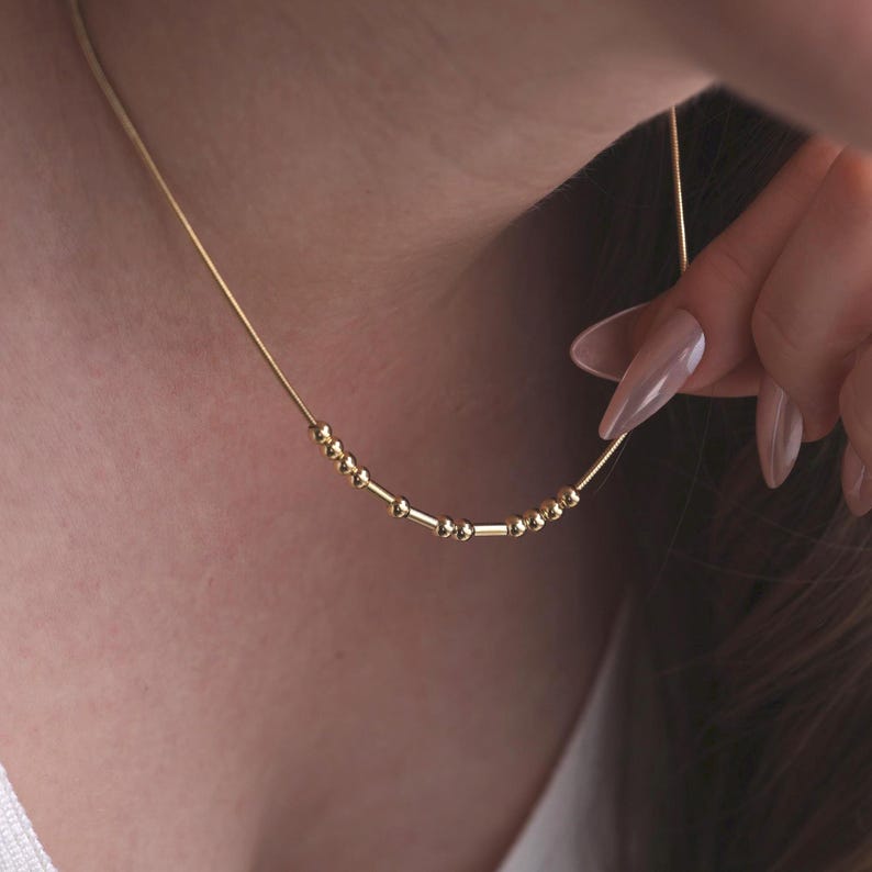 This necklace features a simple yet exquisite beaded design, cleverly incorporating unique Morse code customization elements to showcase a distinctive spiritual connotation and fashionable charm. Using round beads to represent "dots" and long tubes to represent "lines," you can hide secret messages, names, or meaningful words within.