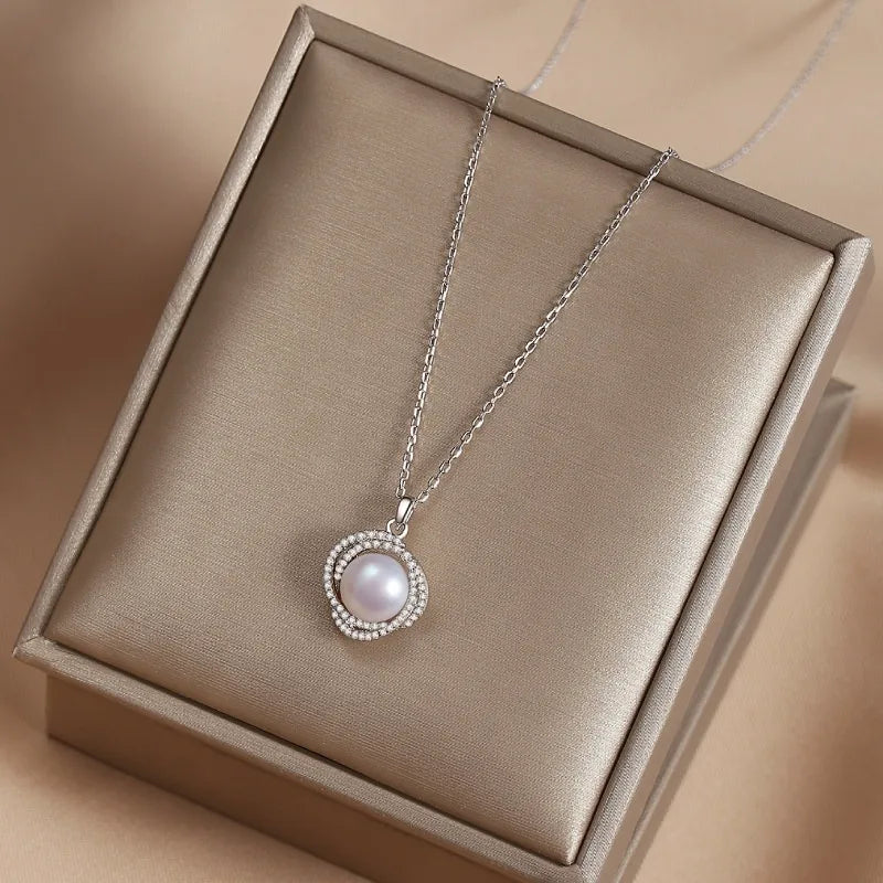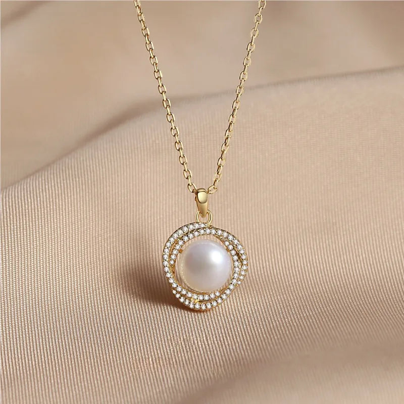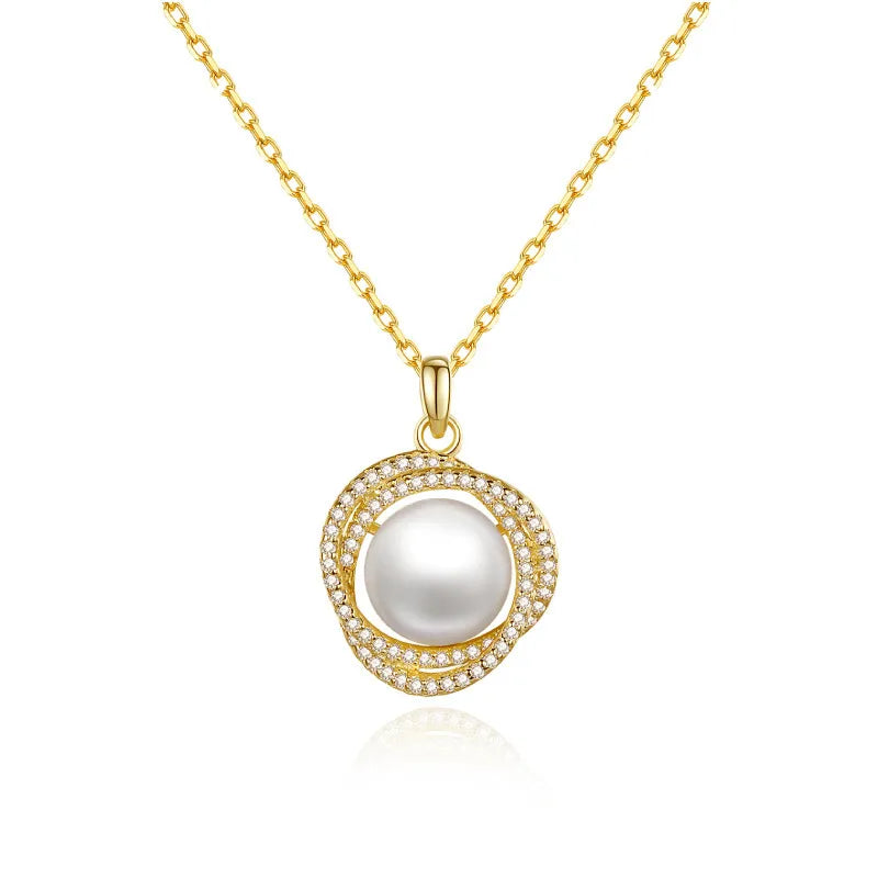 Fortune Goddess Pearl Necklace for Women S925 Sterling Silver Collarbone Chain Geometric Pendant Jewelry