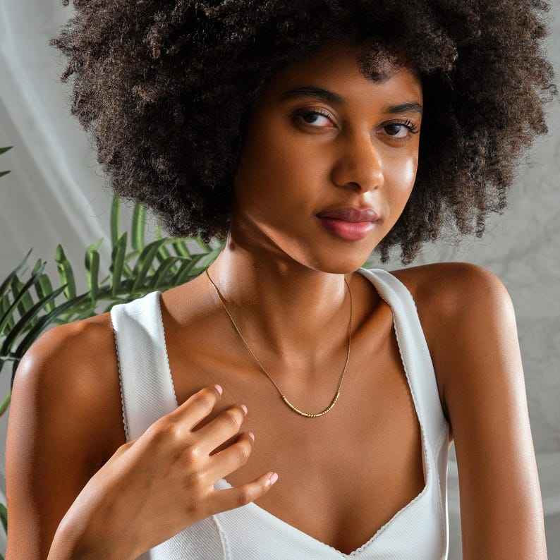 We recommend 14k or 18k solid recycled gold if you're looking for your jewelry to last generations to come. Solid gold is guaranteed to never tarnish, so you never have to take it off (bonus: you can wear it in water). It's 100% worry free. In addition to our quality standards, all our manufacturers certify where their gold comes from so we can proudly stand behind our ethical practices.