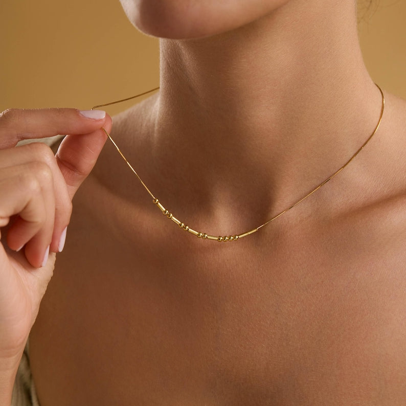 Morse Code Custom Name Necklace - Copper / Silver / 15.7in (40cm)