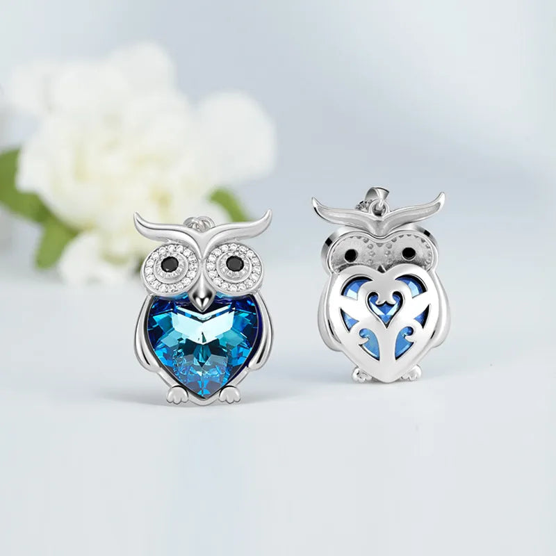 Owl Pendant Necklace for Women Crystal Inlaid 925 Sterling Silver Fashion Collarbone Chain Jewelry Accessories
