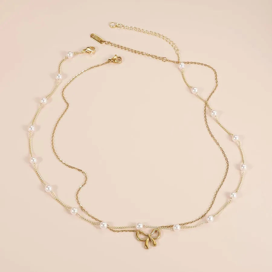 The Pearl Double Layer Choker Necklace features two elegantly layered strands of high-quality pearls.