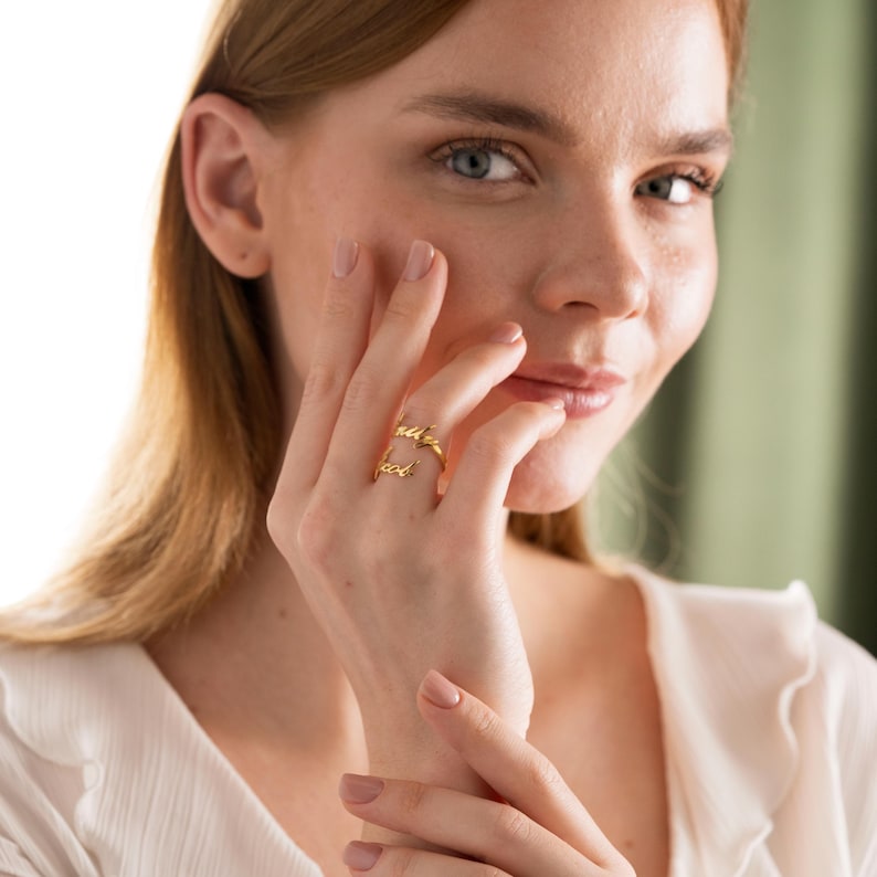 This ring is more than just a piece of jewelry; it is a medium for conveying personal emotion and taste. It combines modern design with personalized elements, making it both fashionable and full of personality. For those seeking unique charm, this is an ideal choice. Name rings have always been among women's favorite gifts.