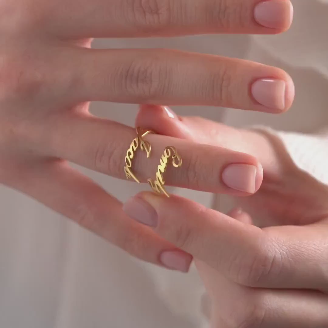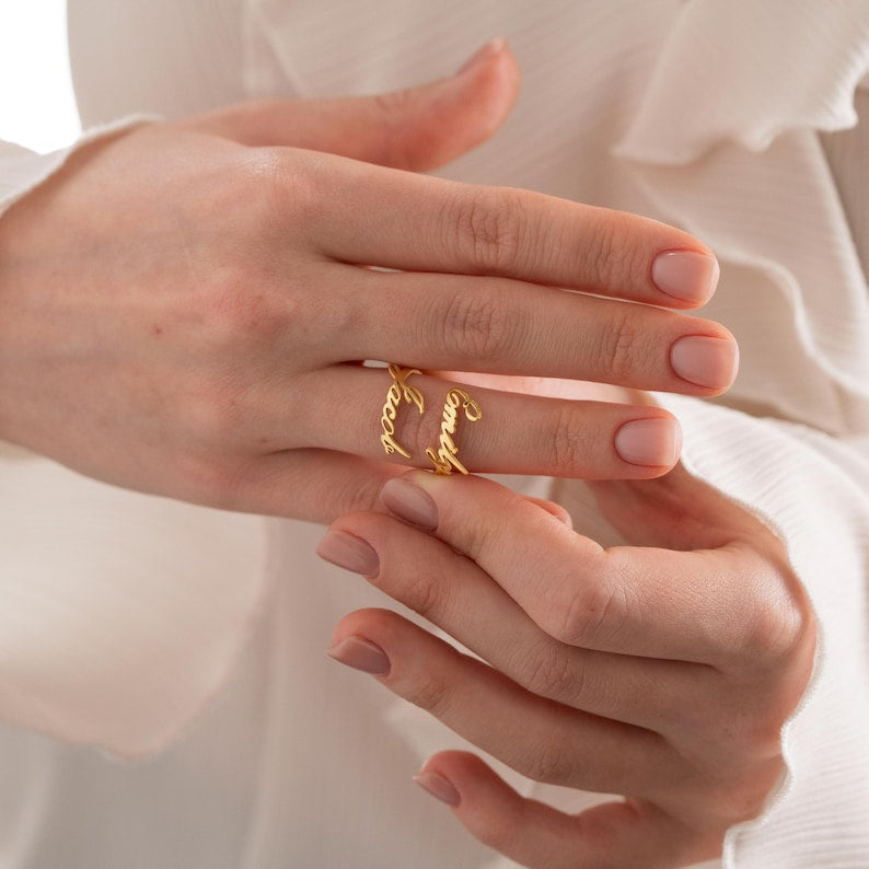 This ring is based on a minimalist and exquisite double name design, subtly blending personalized customization elements to showcase a distinctive fashion charm. You can freely customize two names, giving the ring a one-of-a-kind personality, making it your exclusive symbol or a special gift.