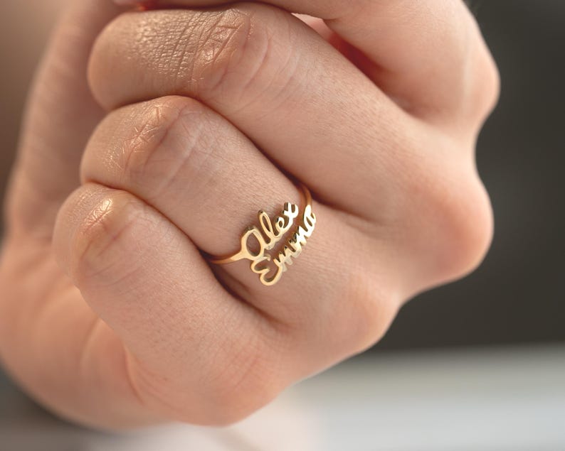 This ring is based on a minimalist and exquisite double name design, subtly blending personalized customization elements to showcase a distinctive fashion charm. You can freely customize two names, giving the ring a one-of-a-kind personality, making it your exclusive symbol or a special gift.