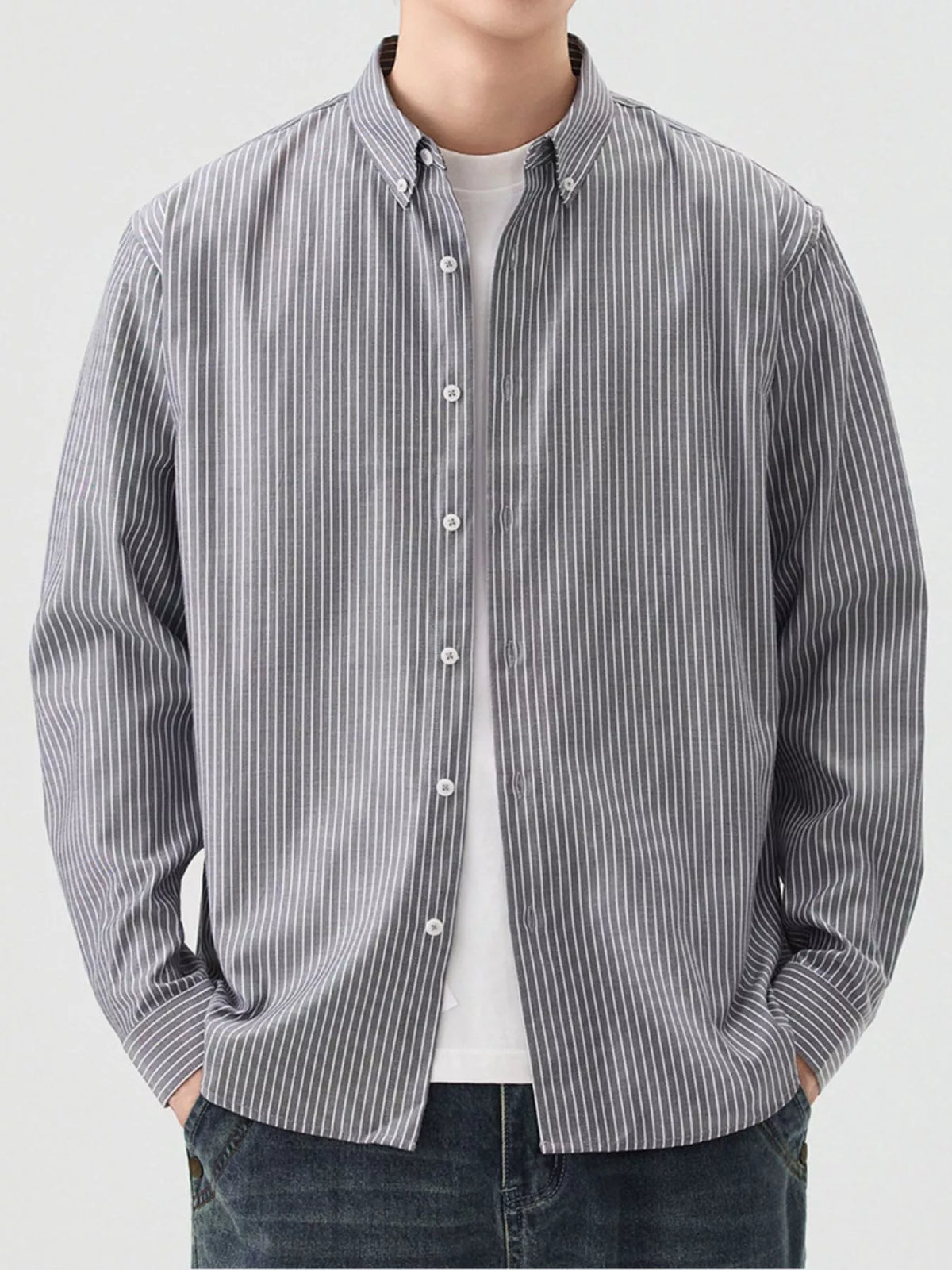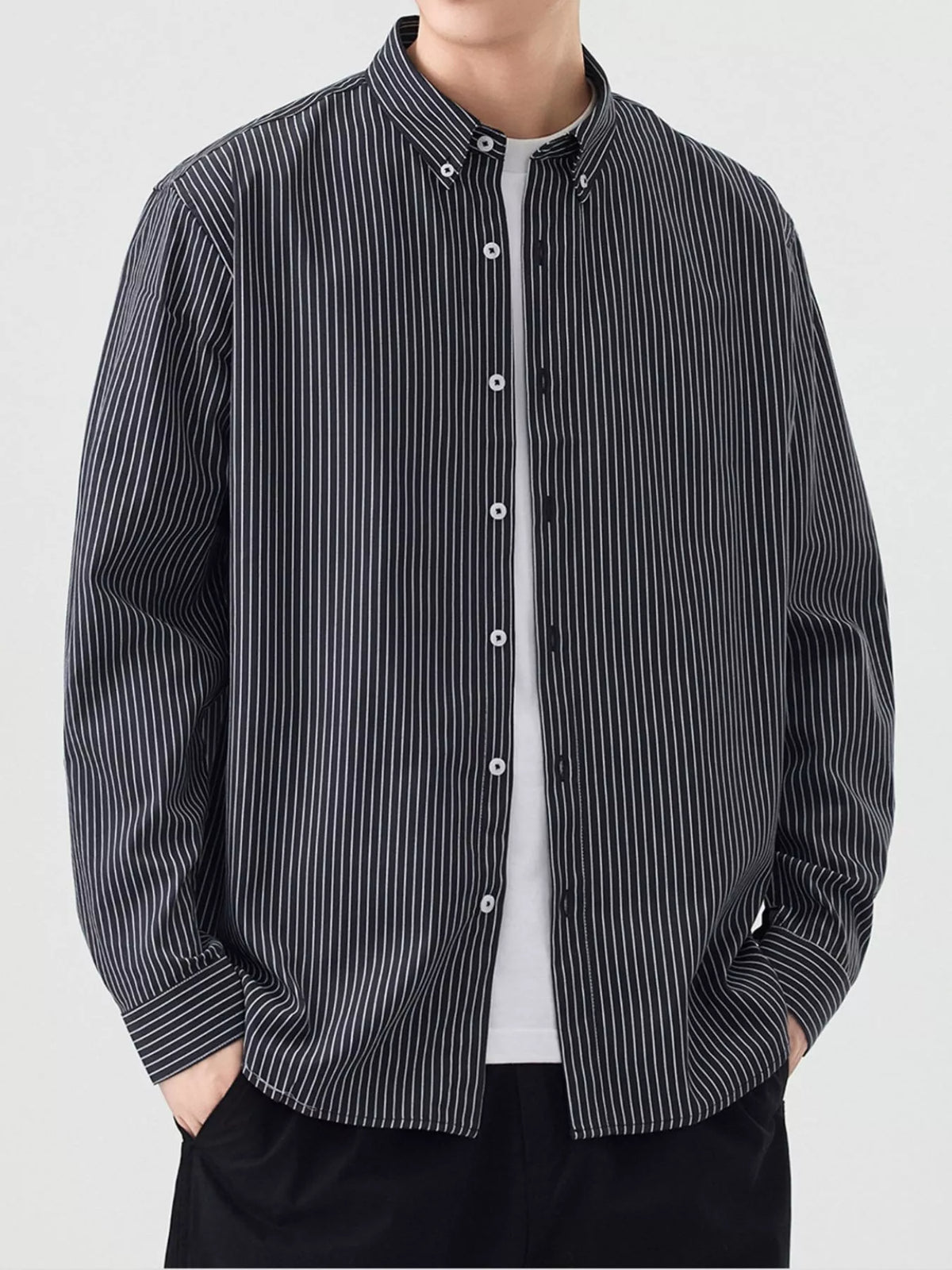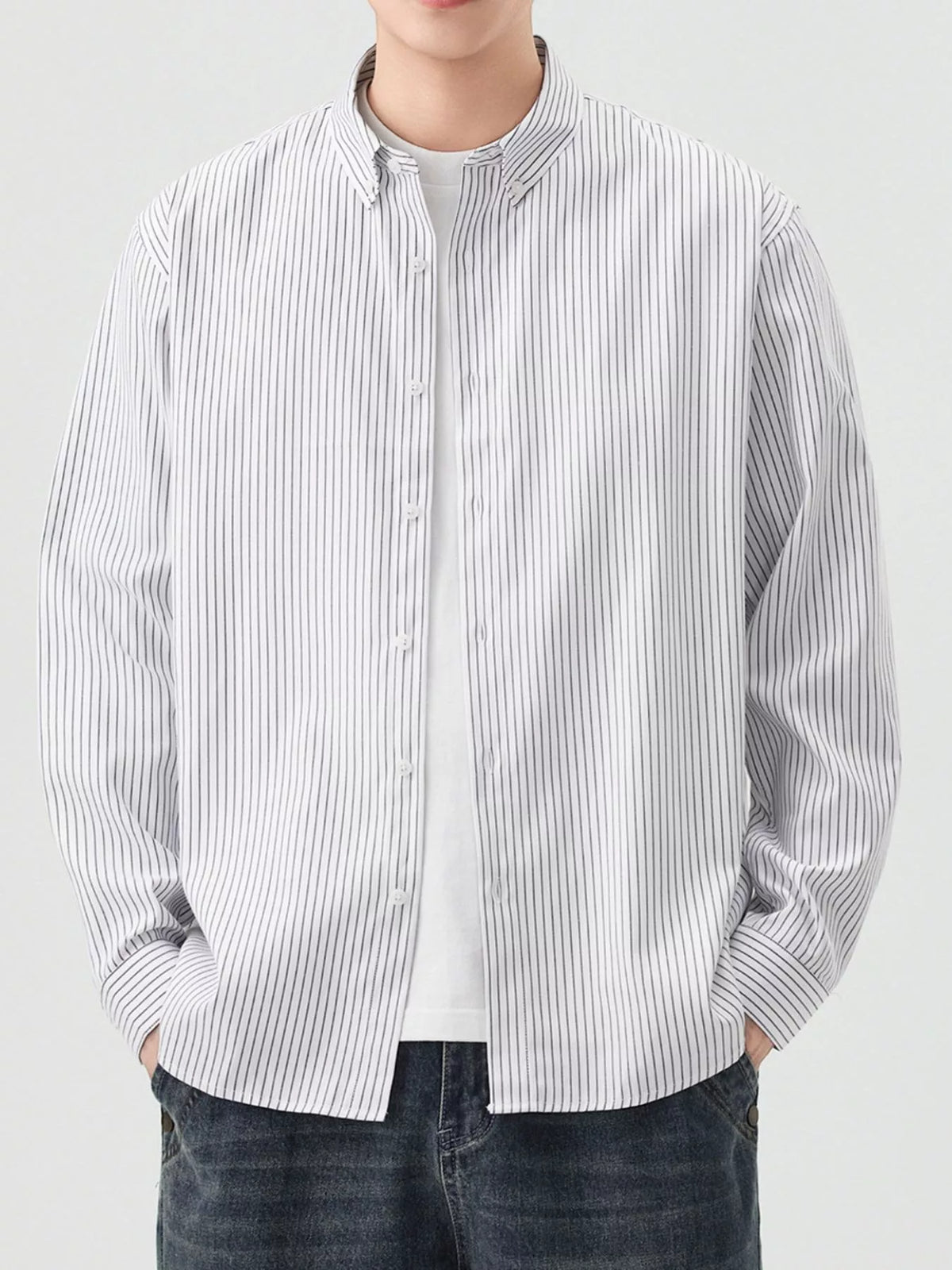 Men's Full Size Casual Striped Button-Down Shirt Plus Size - White / S