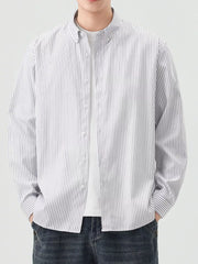 Men's Full Size Casual Striped Button-Down Shirt Plus Size
